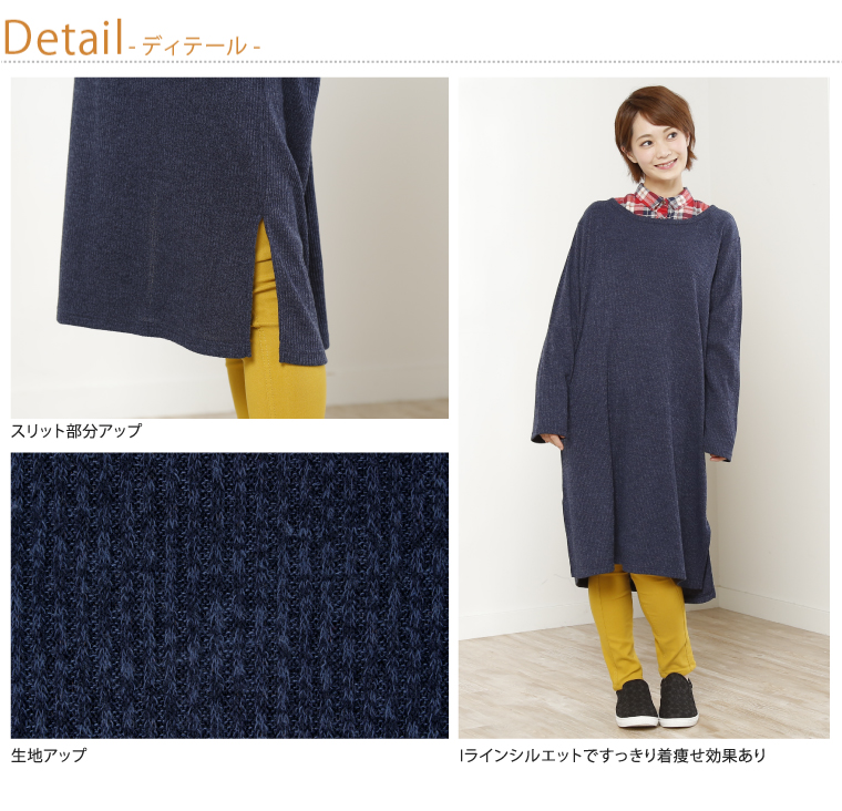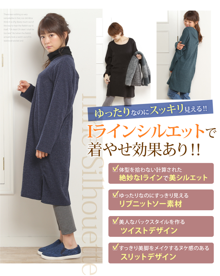 着心地ゆったりなトレンドアイテム♪リブ編み風で表情豊かなニットソーワンピース