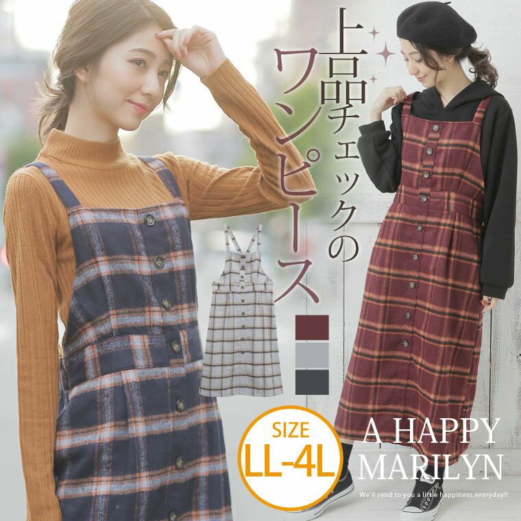 ナチュラルな起毛チェックでほっこり暖か♪エプロンワンピース