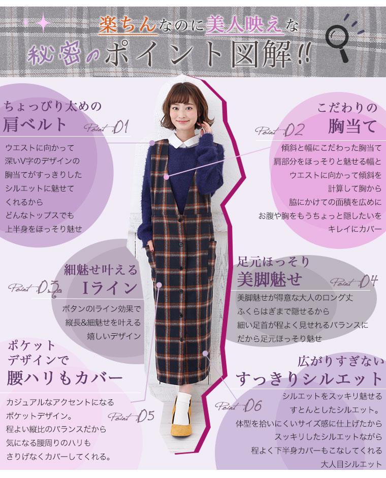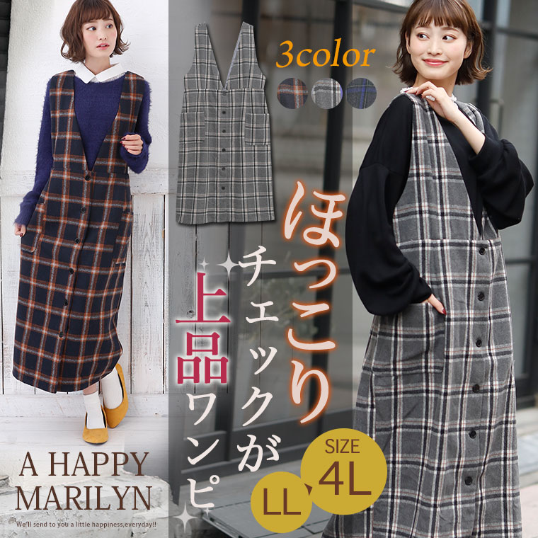 ジャンスカ LL 3L 4L 冬 冬物 冬服 ぽっちゃり かわいい おしゃれ カジュアル ナチュラル 上品 ガーリー ビッグサイズ 可愛い 大人 起毛 チェック ロング丈 ジャンパースカート