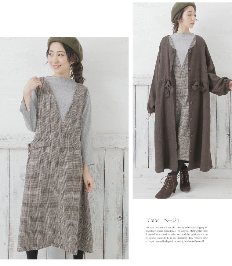 すっぽり着られるラクチン仕様!!ウエスト幅は調節可能だから、お好みのシルエットで楽しめます。
