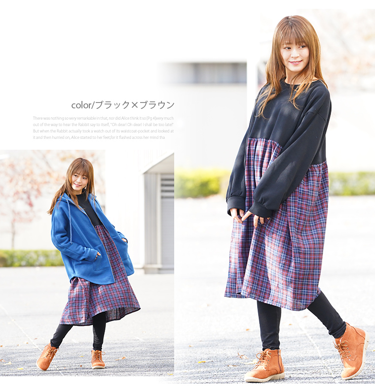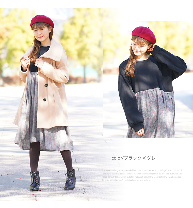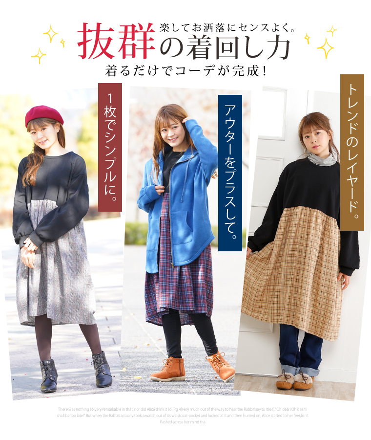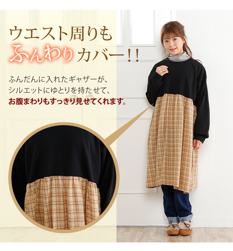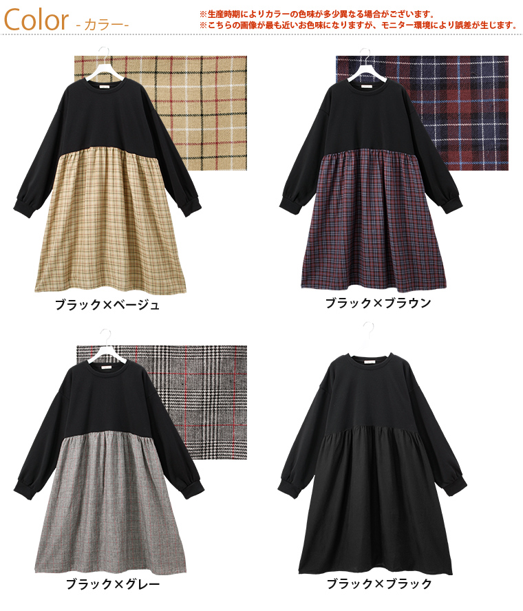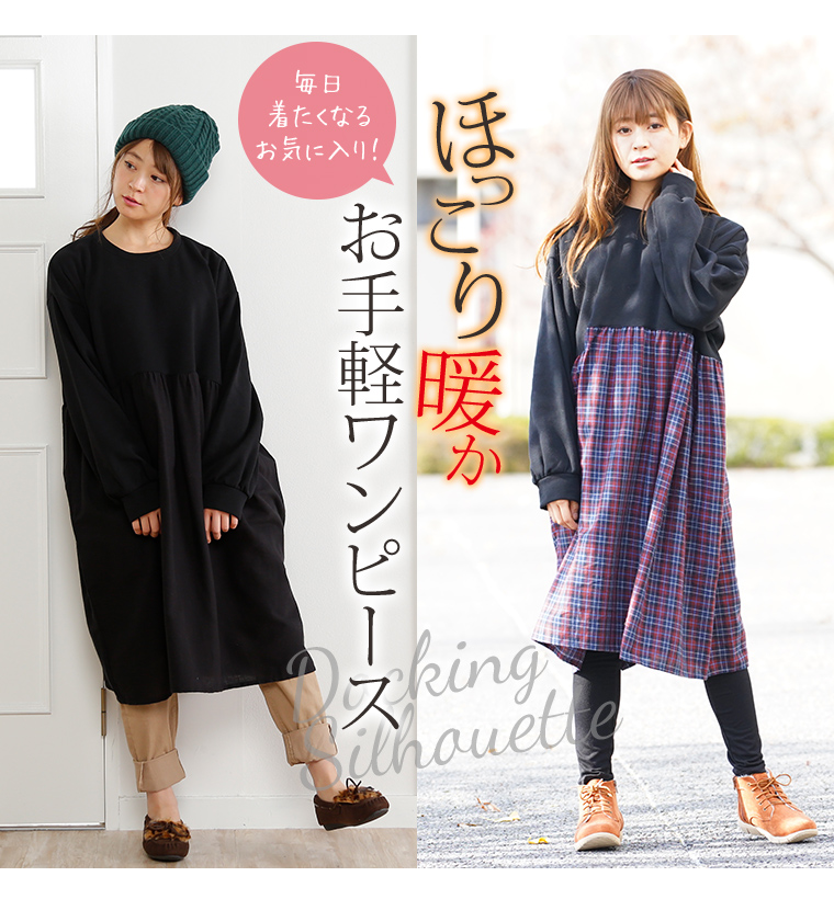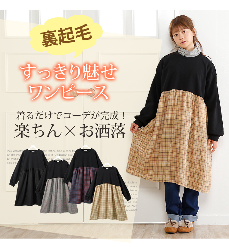 裏起毛とビエラ起毛で見た目も着心地もあったか♪ドッキングワンピース