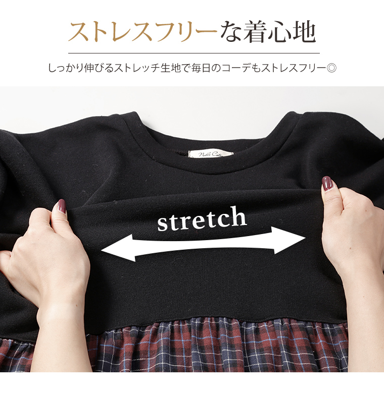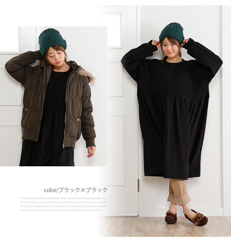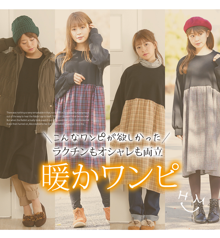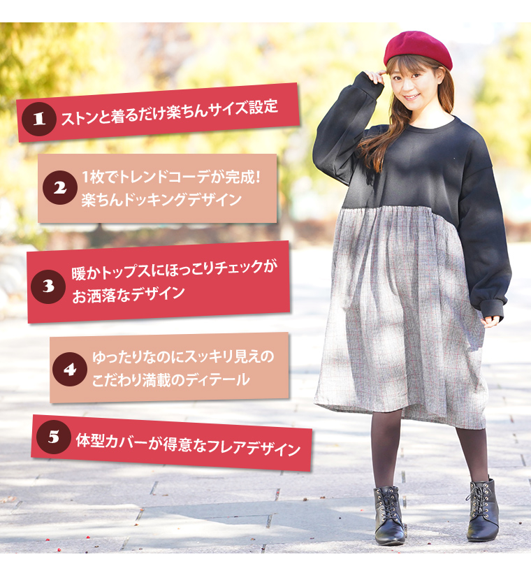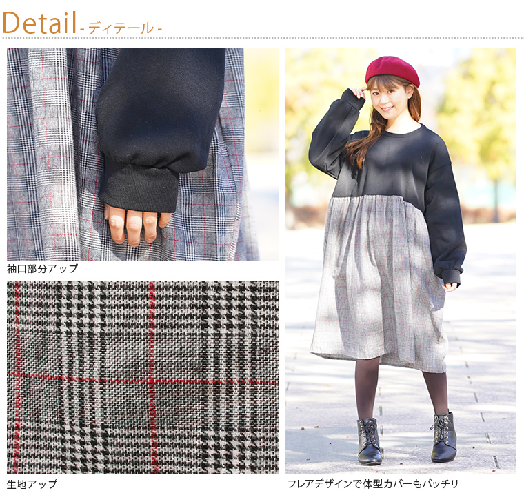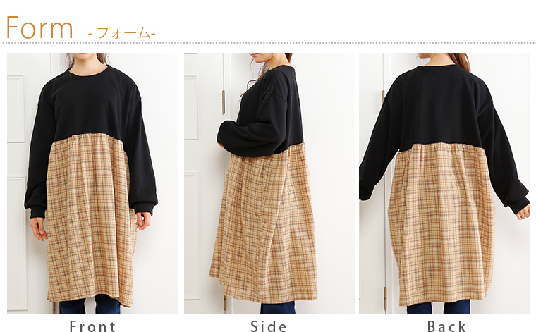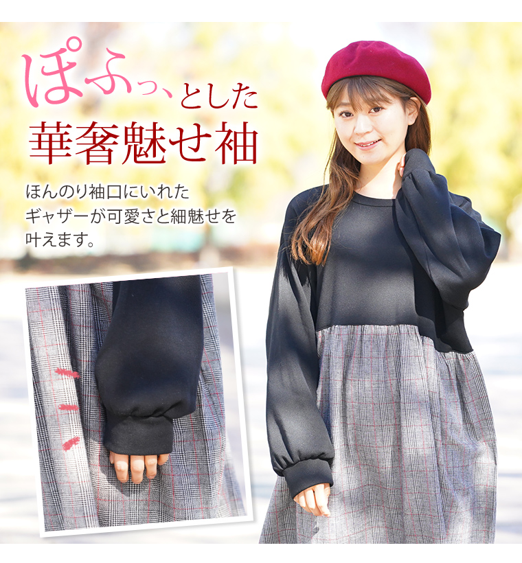 裏起毛とビエラ起毛で見た目も着心地もあったか♪ドッキングワンピース