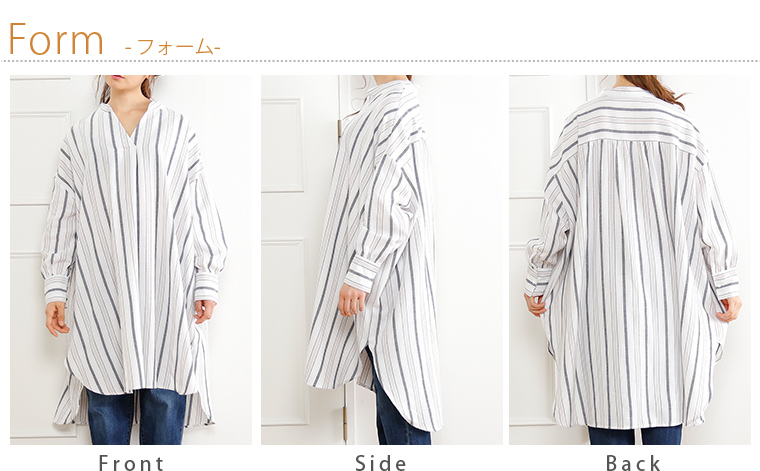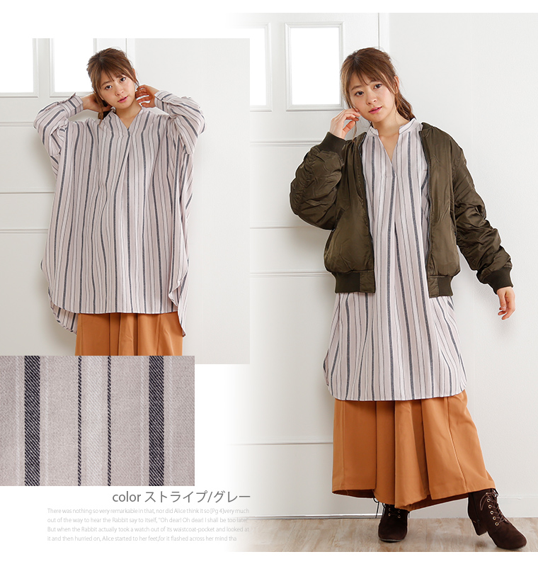 ゆったり丈感で体型カバーもばっちり!スキッパーのV開きで首元もすっきりした印象に。