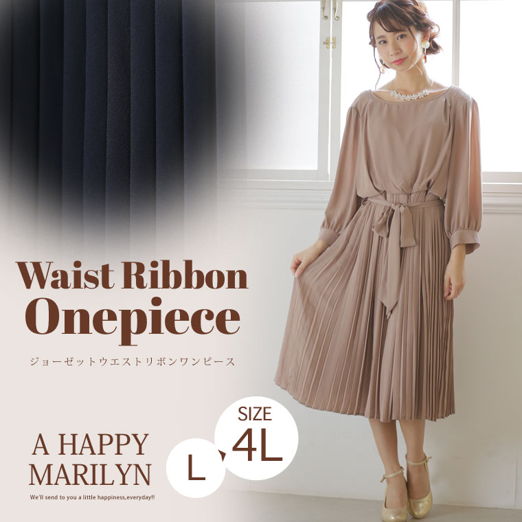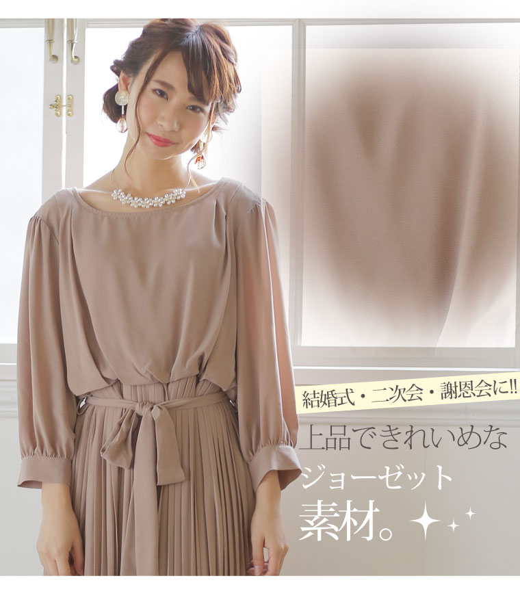華やかなジョーゼット生地で大人っぽく。ウエストリボンワンピース