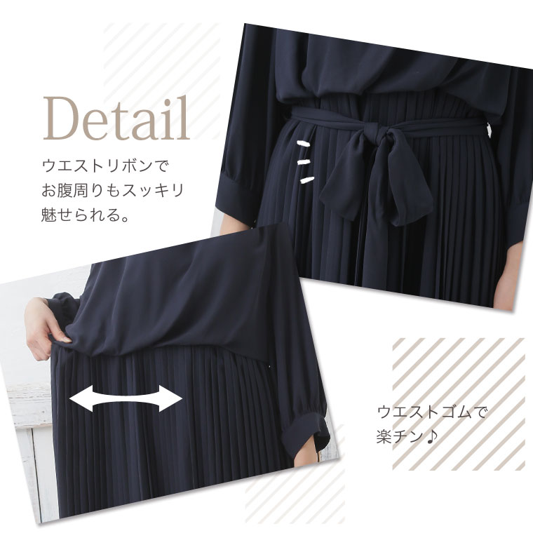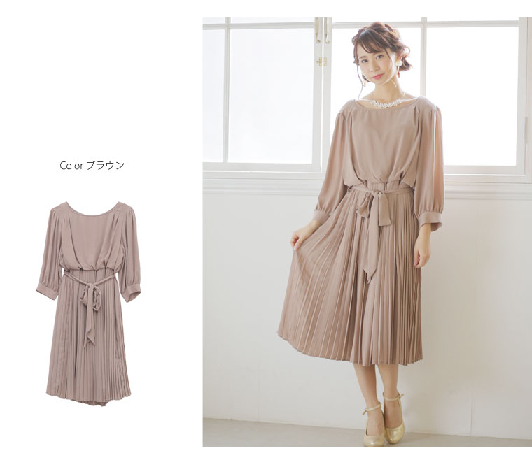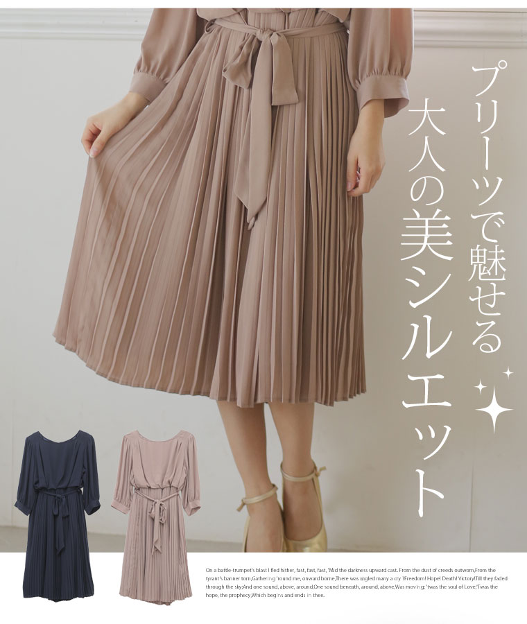エレガントに広がるプリーツスカートで下半身しっかりカバー◎