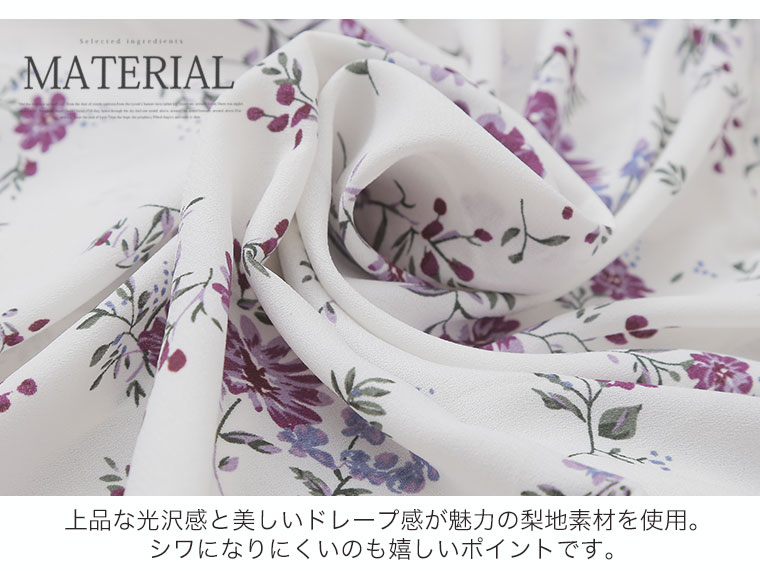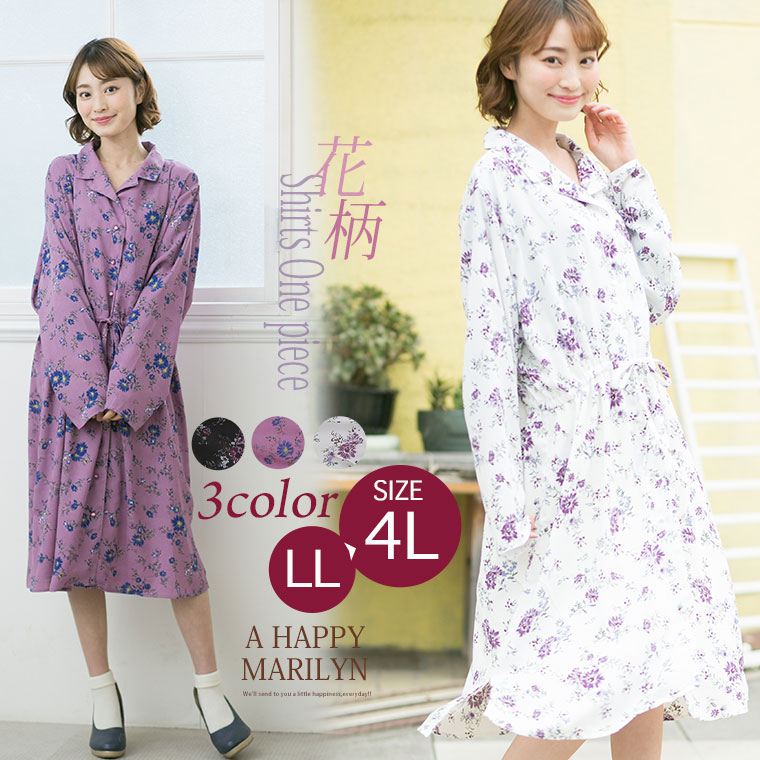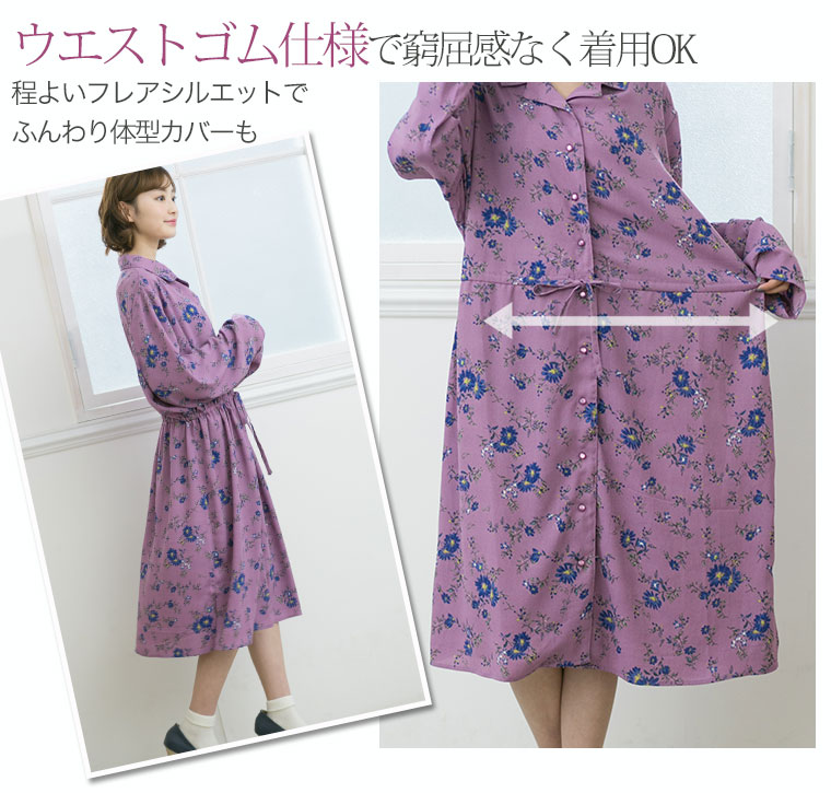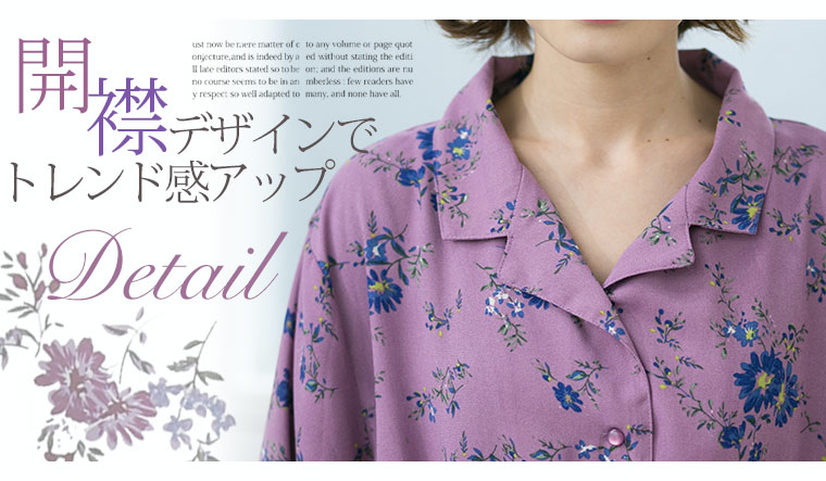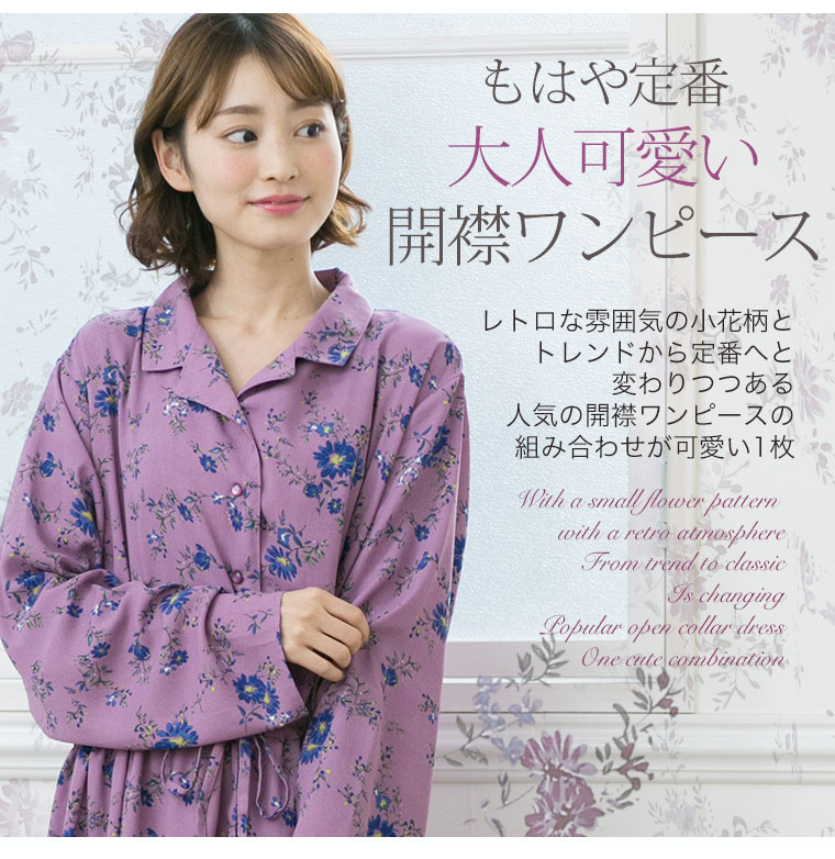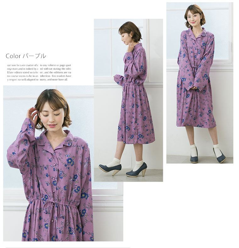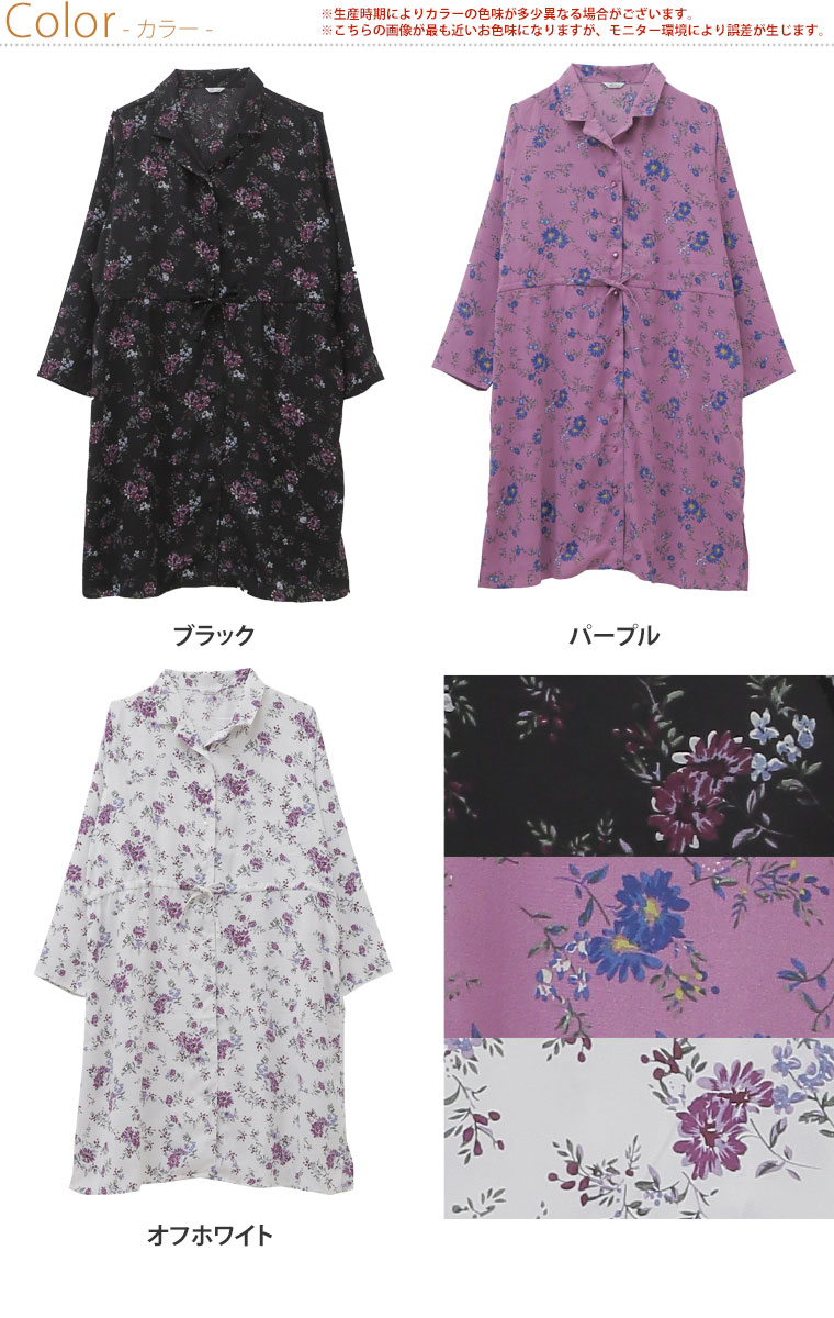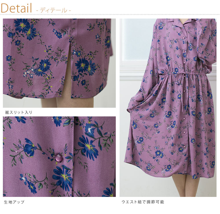 レトロな雰囲気のエステル梨地花柄が可愛いシャツワンピース