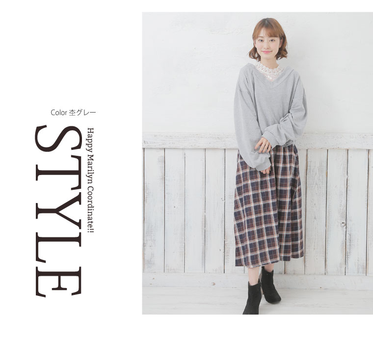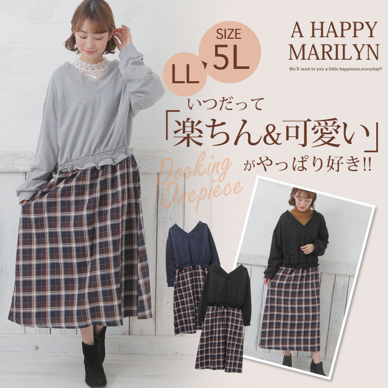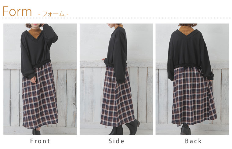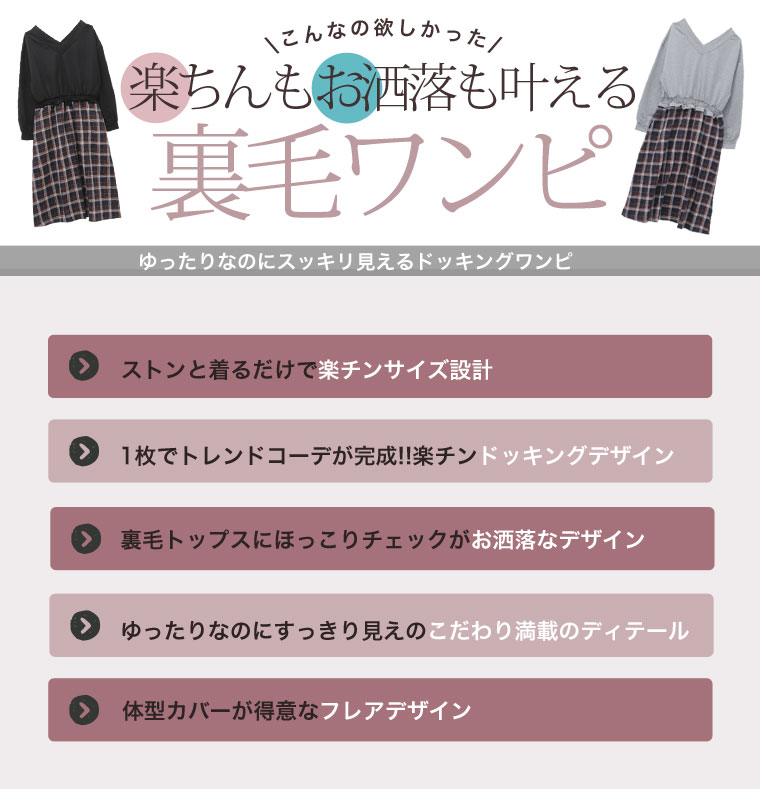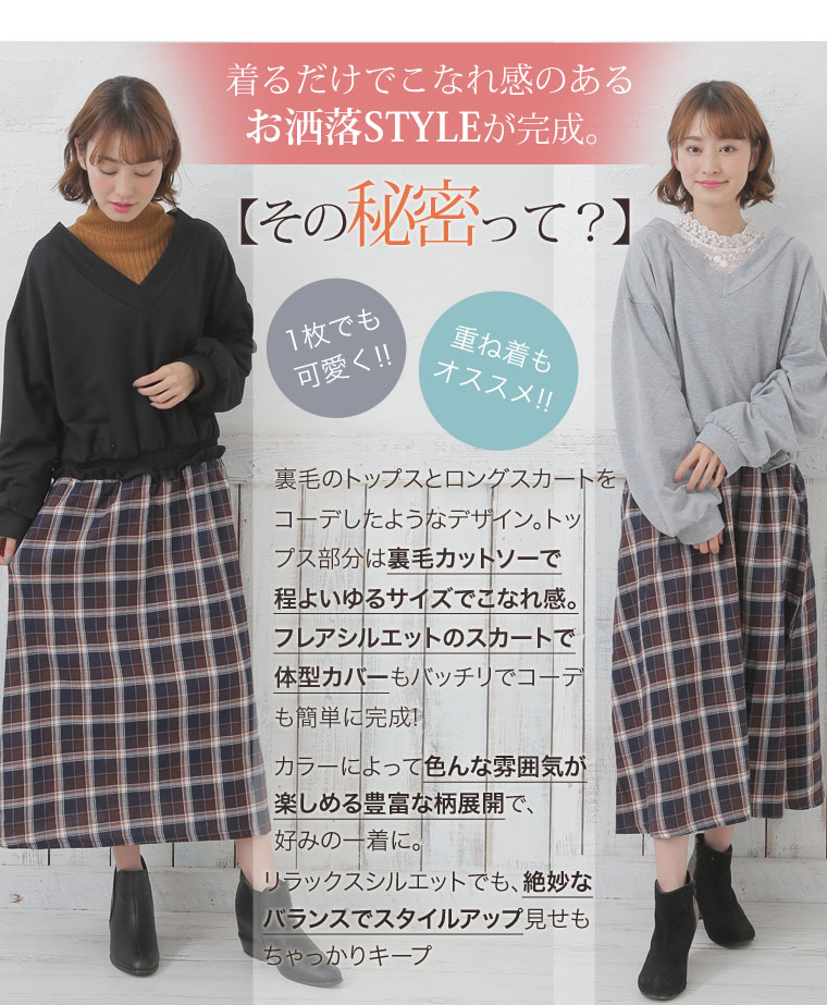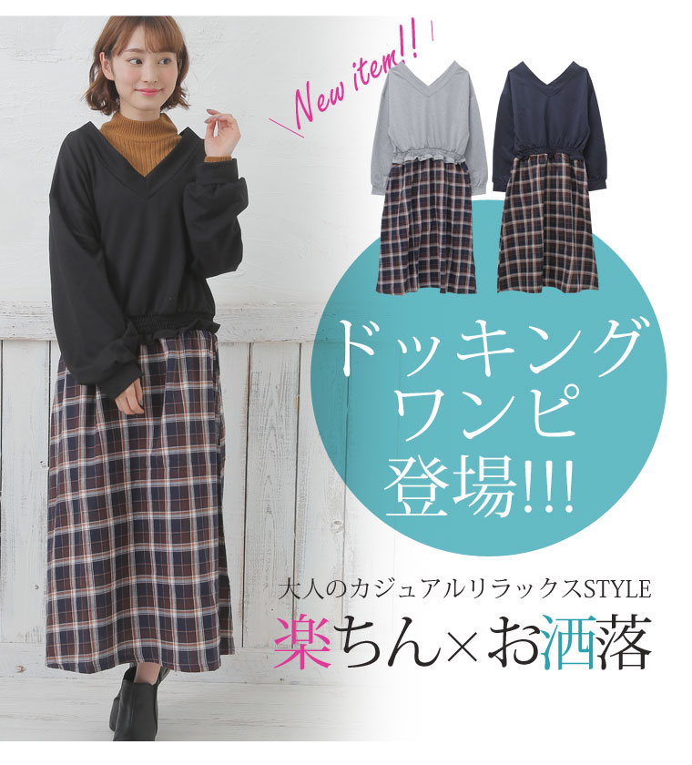 ミニ裏毛でゆったり着こなす。チェック柄ドッキングワンピース