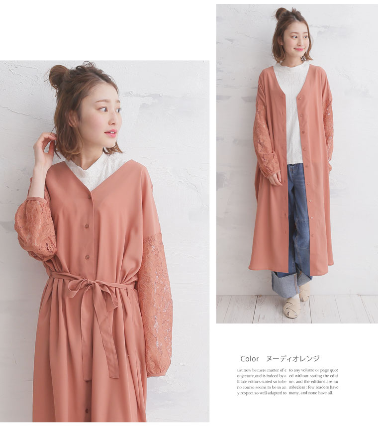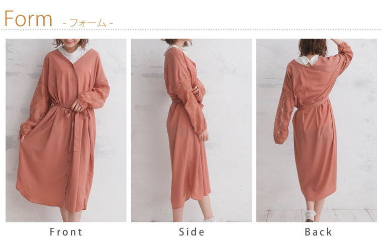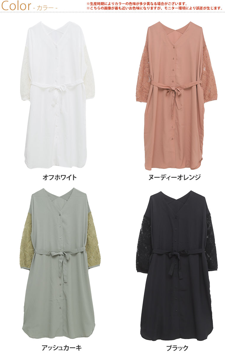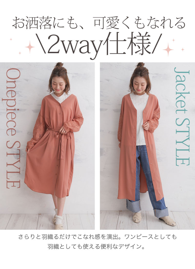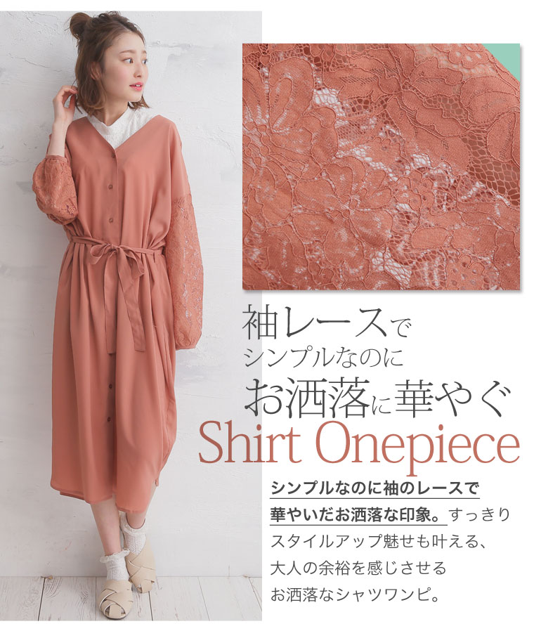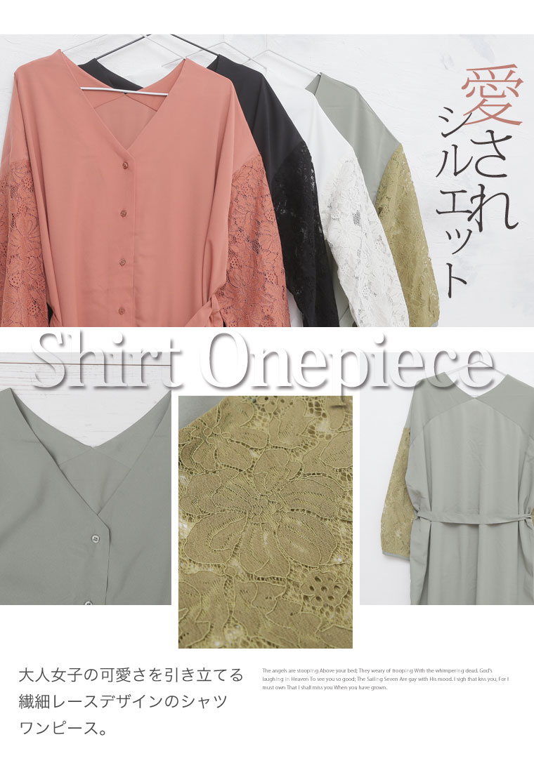 2wayで使える!!レース袖のシャツワンピース