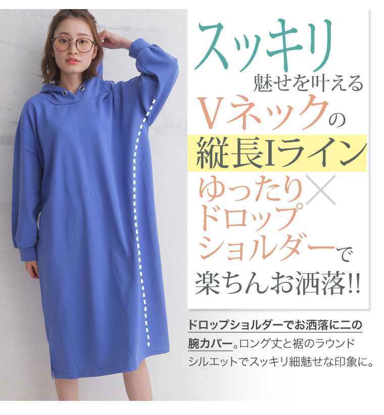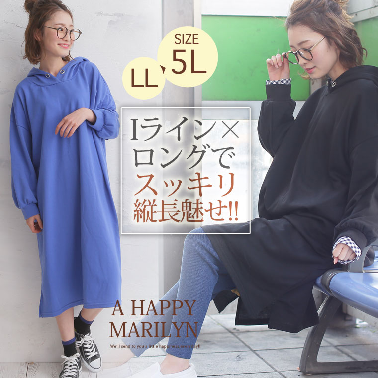 ワンピ ロングワンピース LL 3L 4L 5L 春 春物 春服 ぽっちゃり ゆったり かわいい おしゃれ カジュアル ナチュラル 可愛い 大人 ビッグサイズ TC裏毛 裾スリット フーデッド 長袖 ロング丈 ワンピース