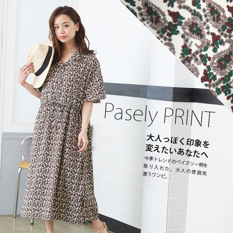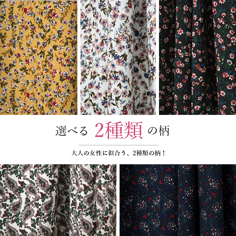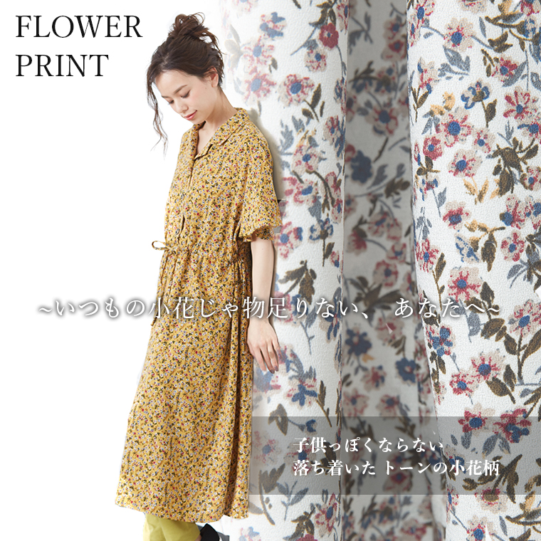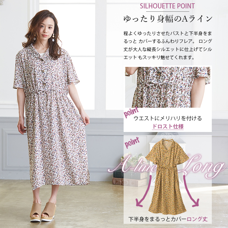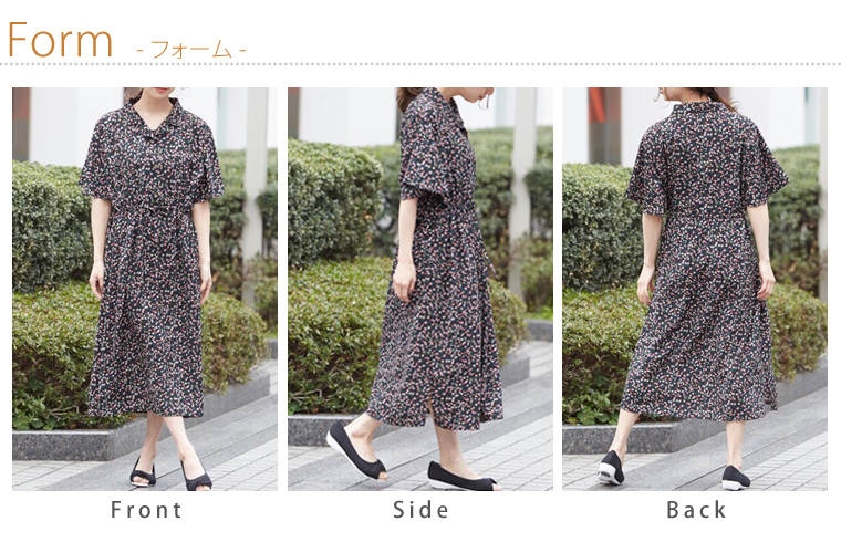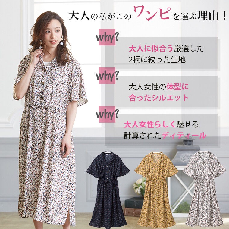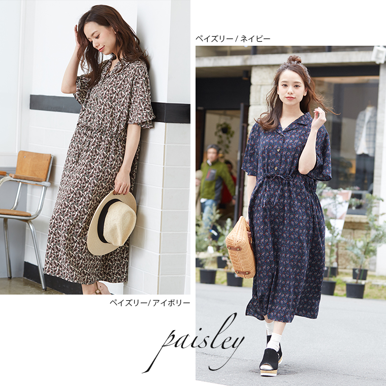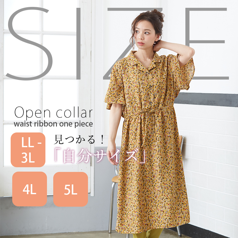 大人女子にぴったり!2柄から選べる開襟ウエストリボンワンピース