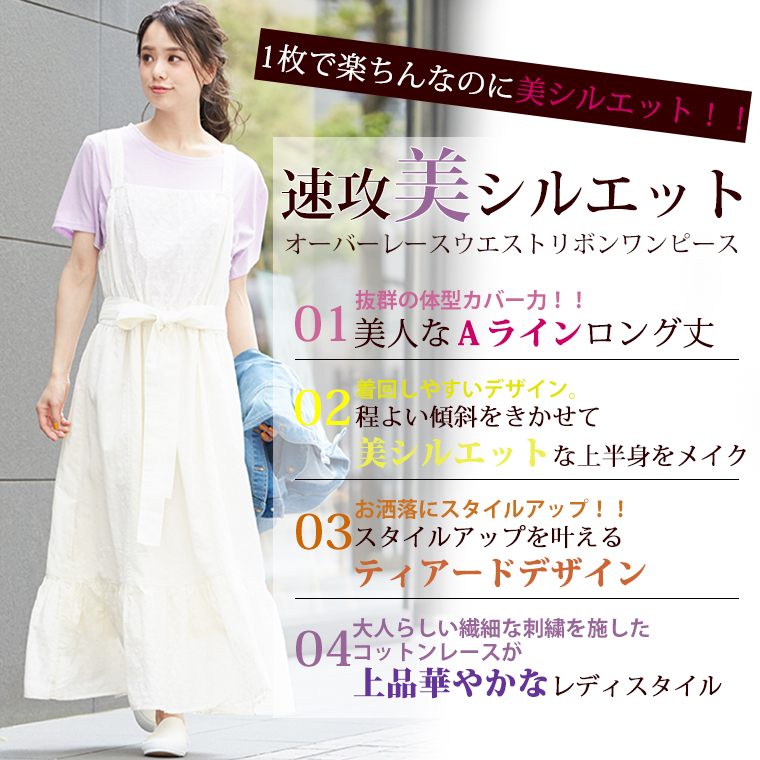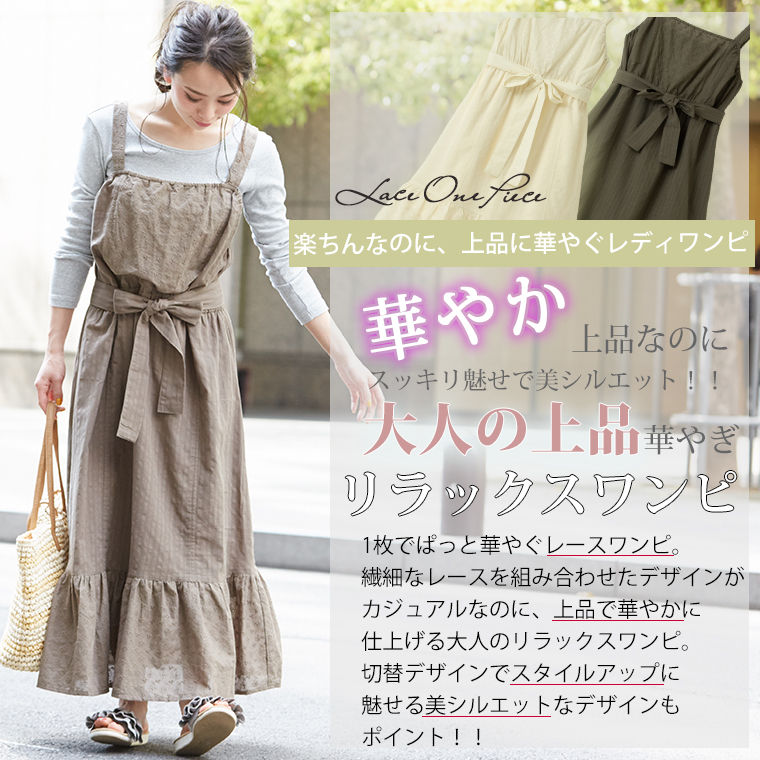 繊細レースが華やかフェミニンな!ウエストリボンワンピース