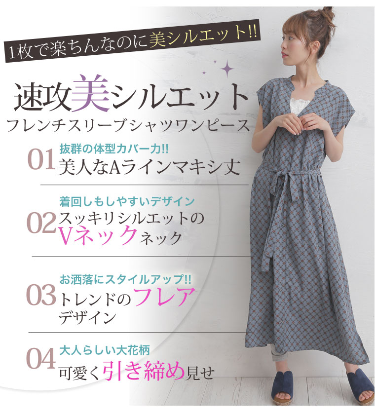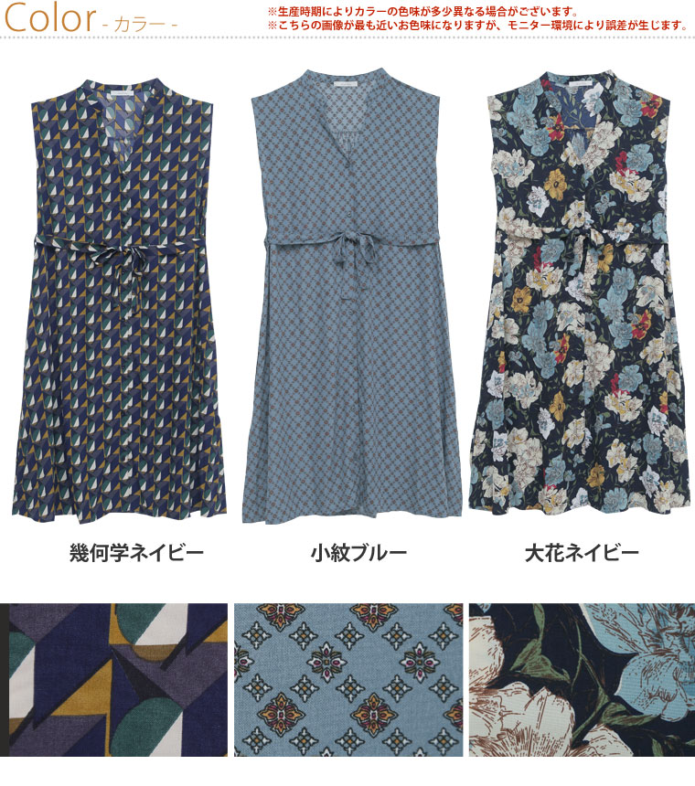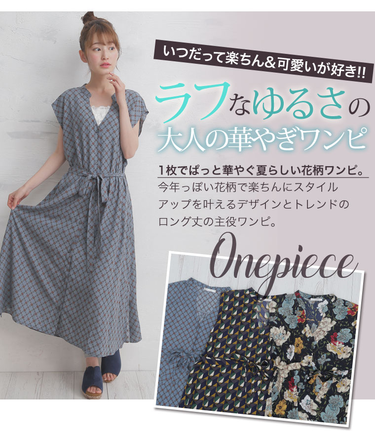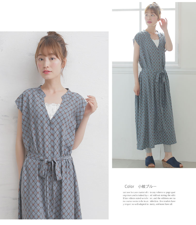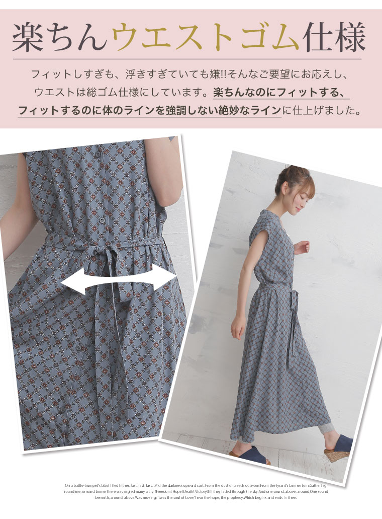 ウエストリボンでメリハリシルエット!!3柄から選べるシャツワンピース