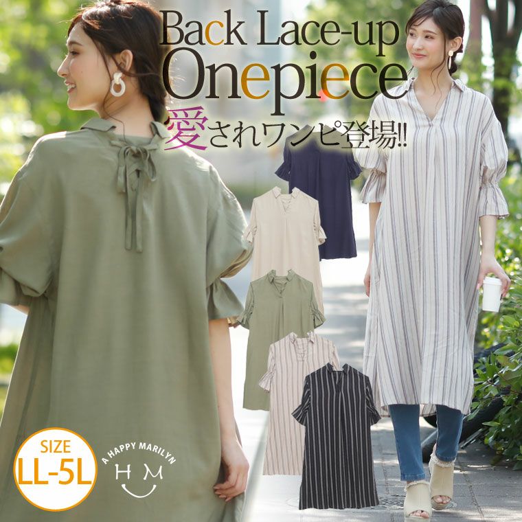 ふんわりキャンディ袖で二の腕カバー◎バックレースワンピース