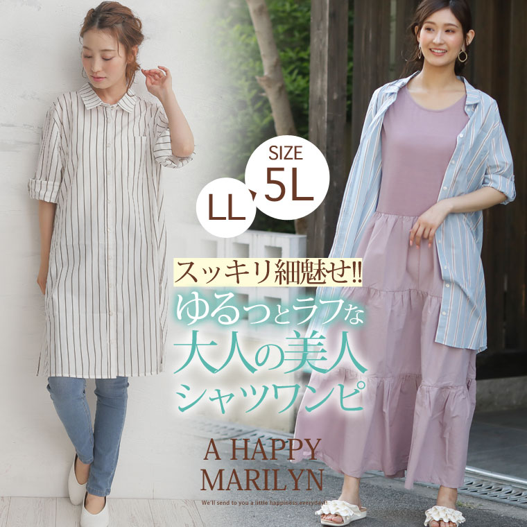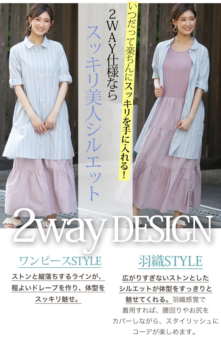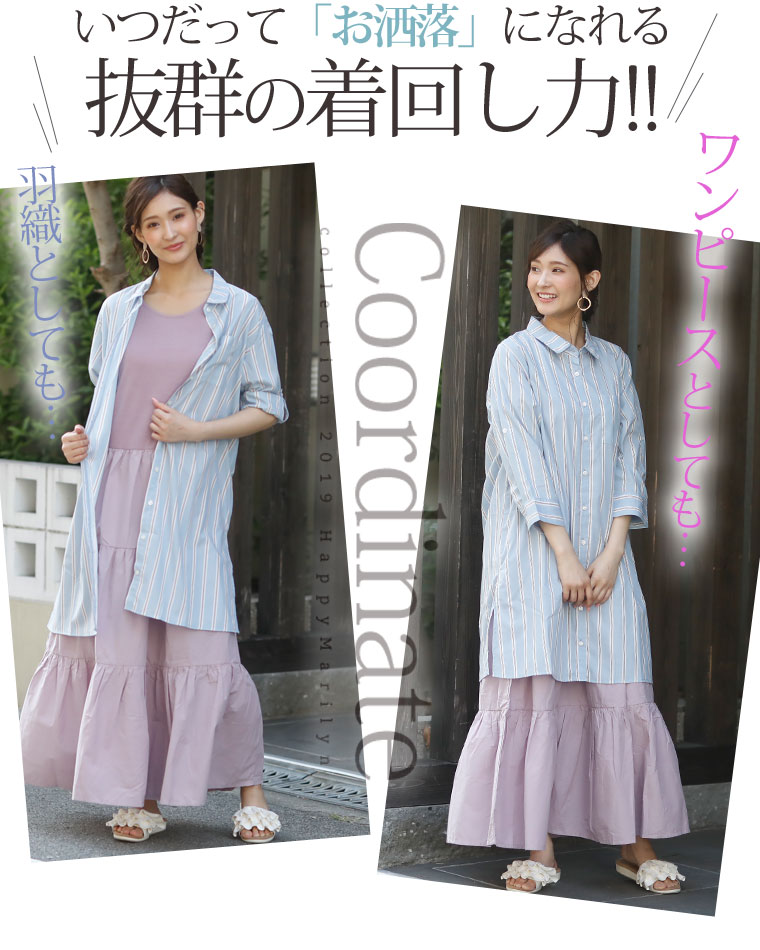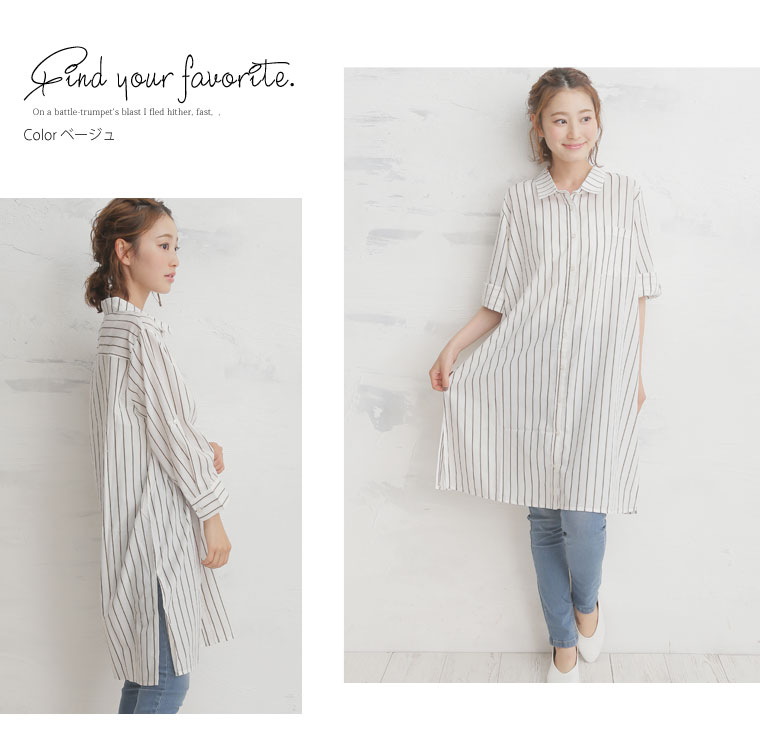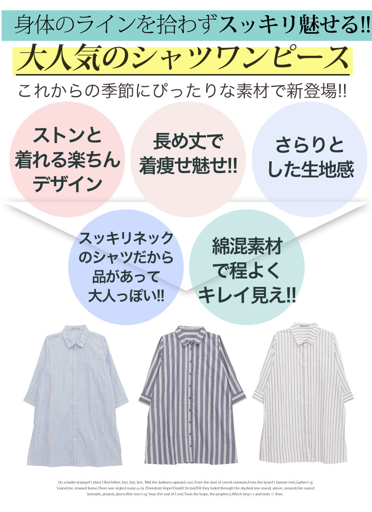 ストライプで細魅せ効果◎ゆるっとラフな七分袖シャツワンピース