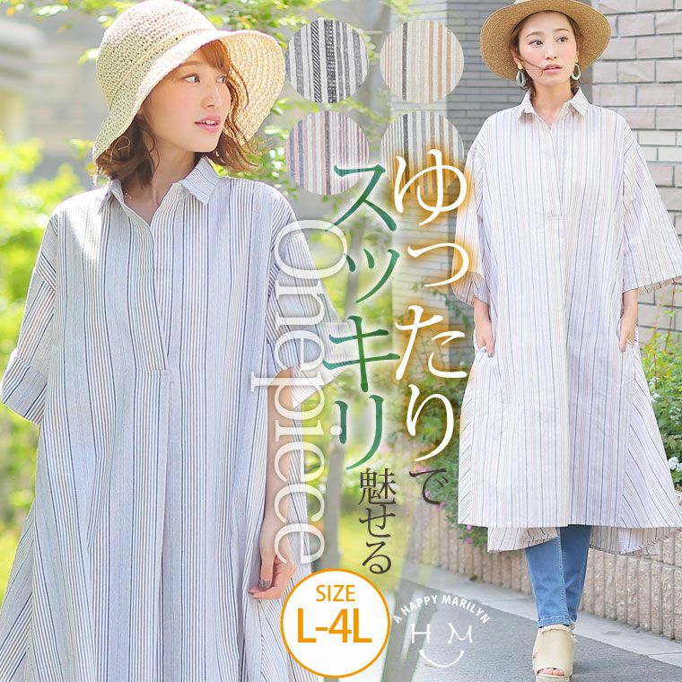 ゆったりサイズでトレンドコーデ♪麻調ストライプテントシャツワンピース
