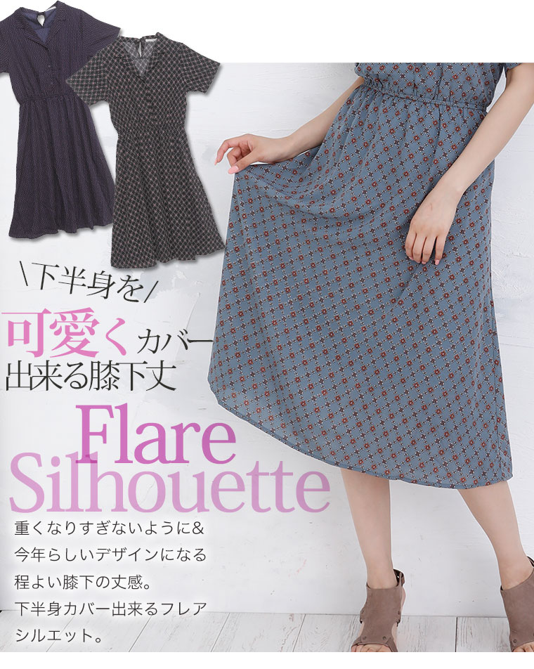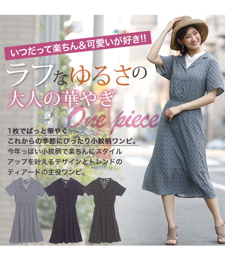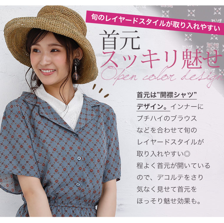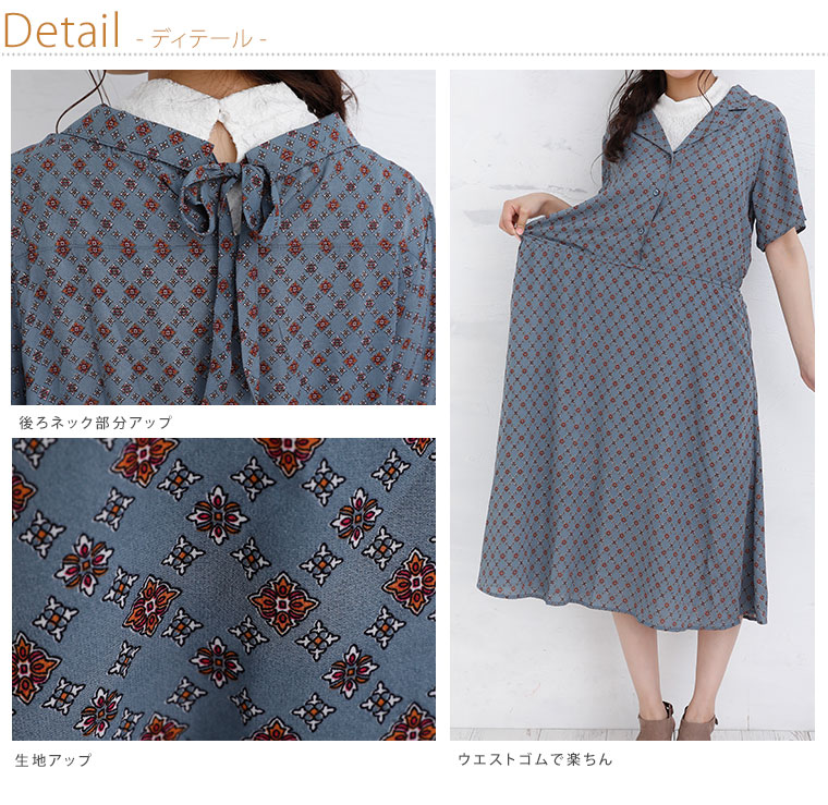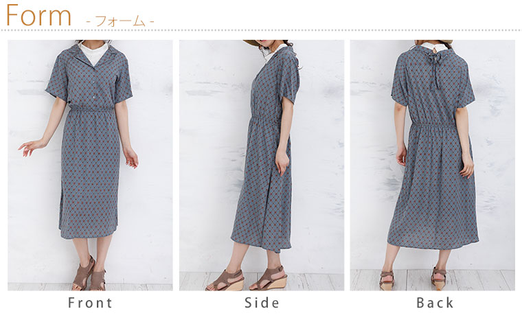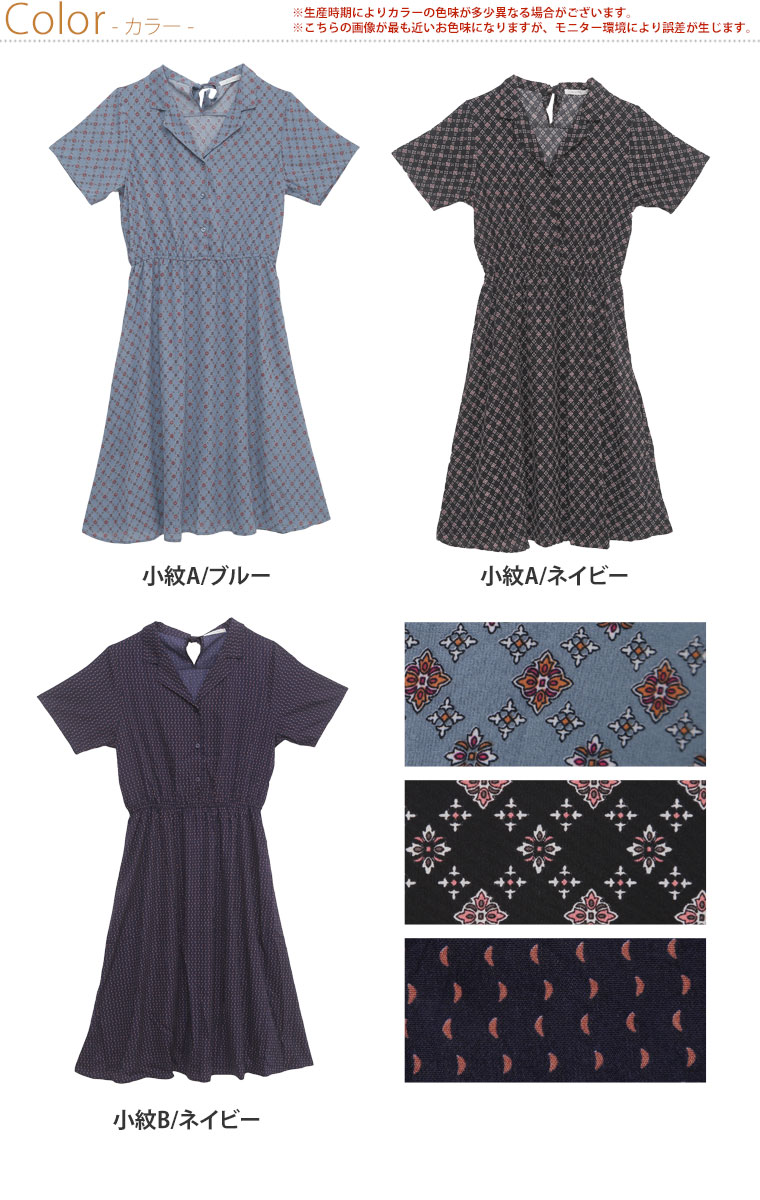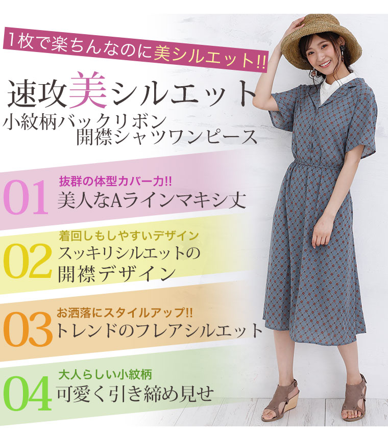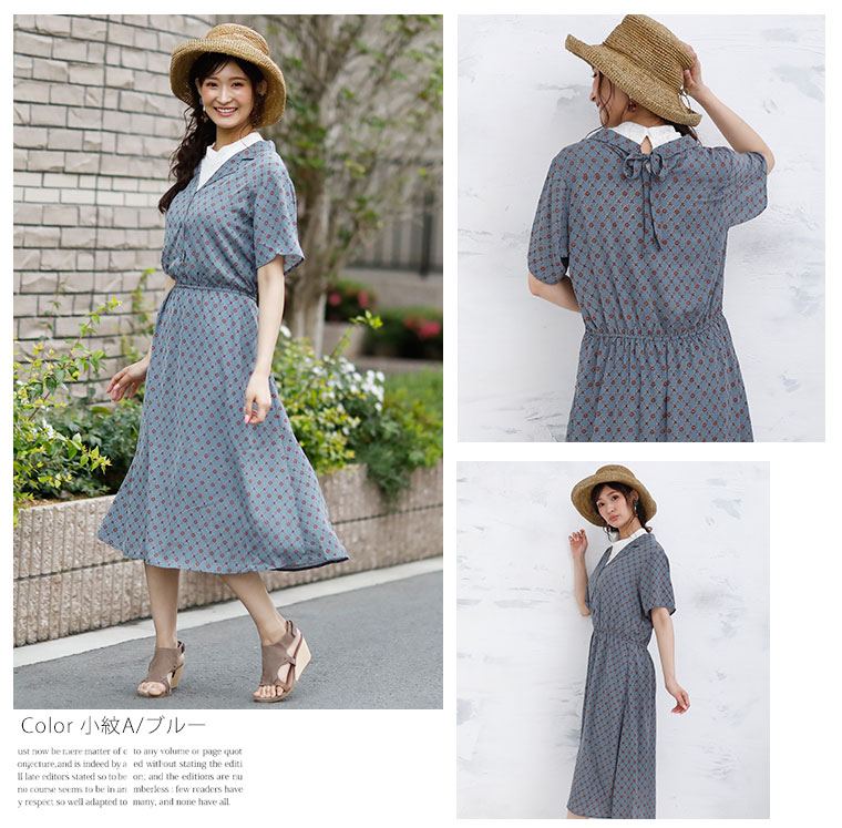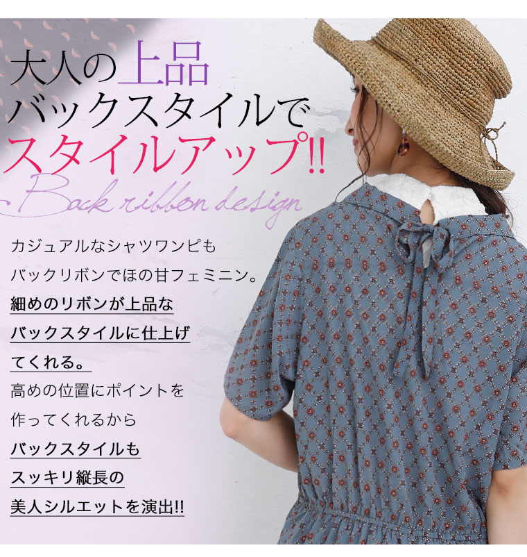 バックリボンで後ろ姿も可愛く♪小紋柄開襟半袖シャツワンピース