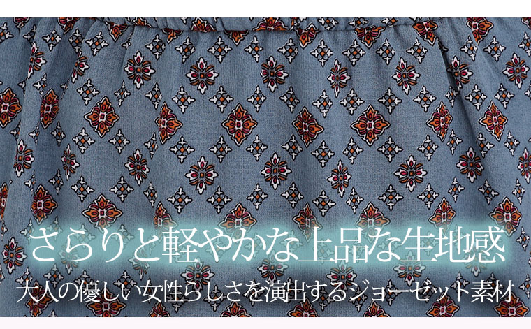 程よい開襟がデコルテラインをすっきり魅せ。ウエストゴムでゆったり楽ちん。