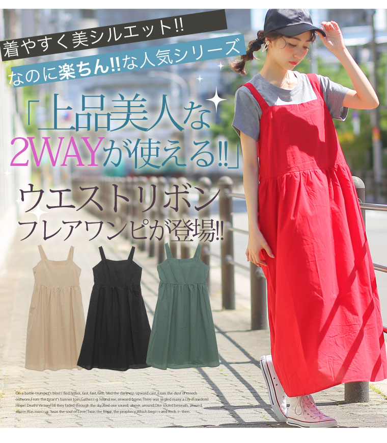ウエストリボンで2wayアレンジ♪フレアキャミワンピース