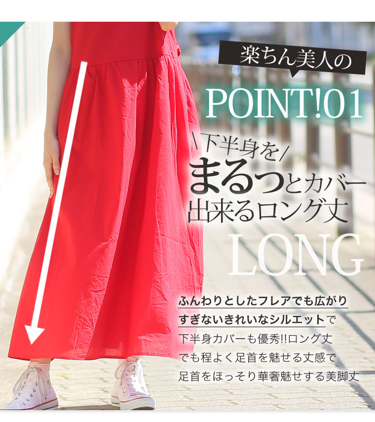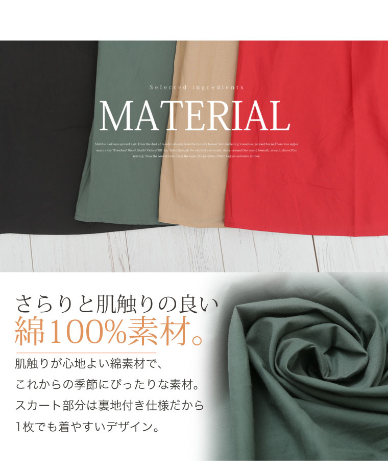 ナチュラルな綿100%生地でふんわりとした着こなしに。気になるお腹周りをさり気なくカバー◎