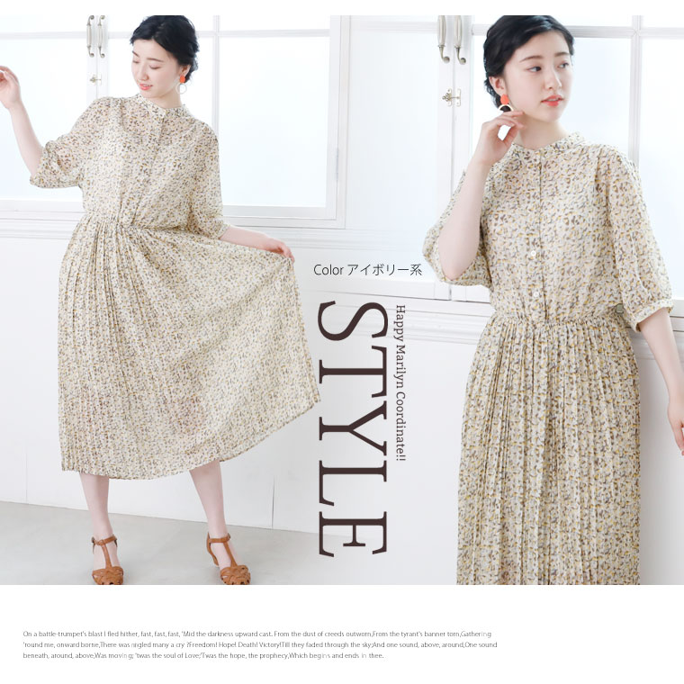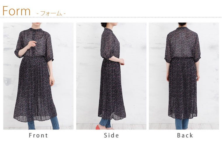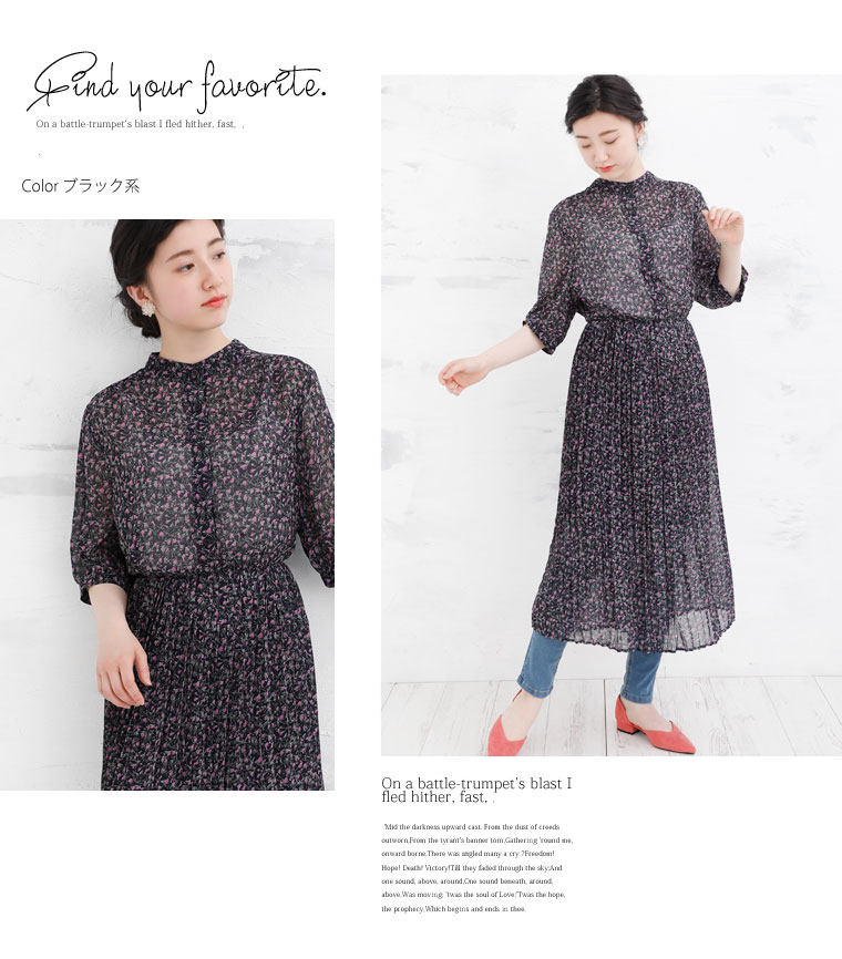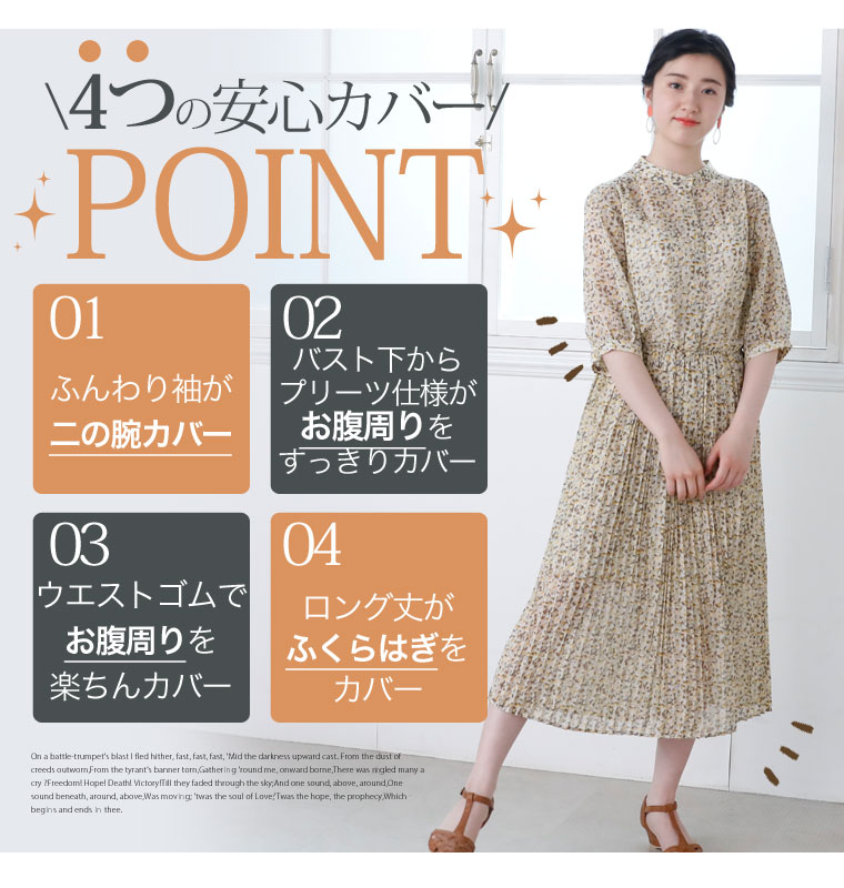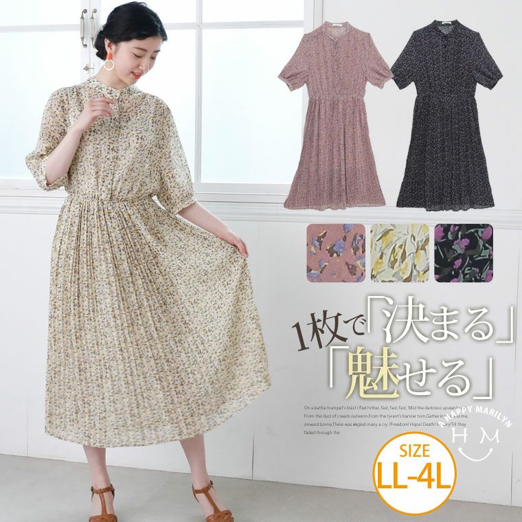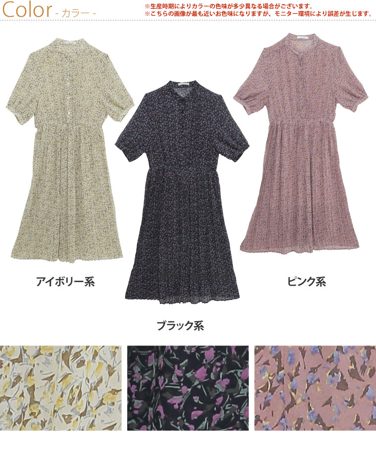 プリーツデザインでスッキリカバー◎花柄ワンピース