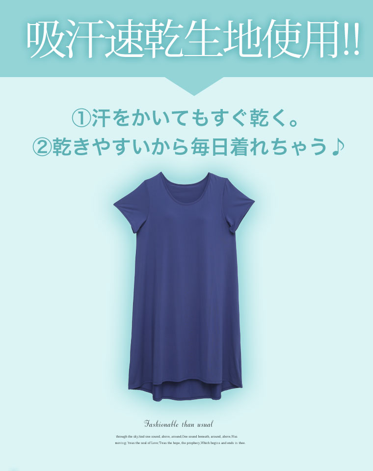 吸水速乾生地で暑い季節もストレスフリー◎楽ちんカップ付き半袖ワンピース