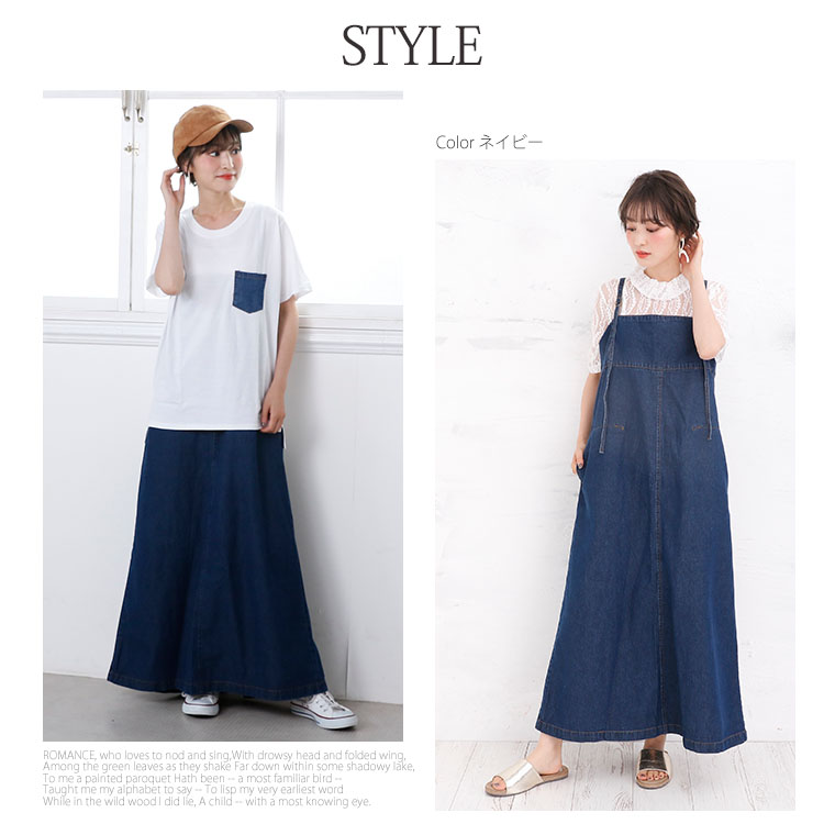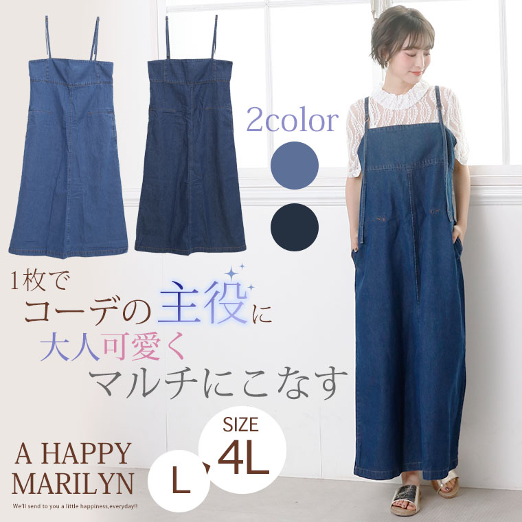 ワンピース ジャンスカ LL 3L 4L 夏 夏物 夏服 夏用 ぽっちゃり かわいい カワイイ 可愛い お洒落 オシャレ おしゃれ カジュアル ナチュラル デニム ロング丈 ジャンパースカート