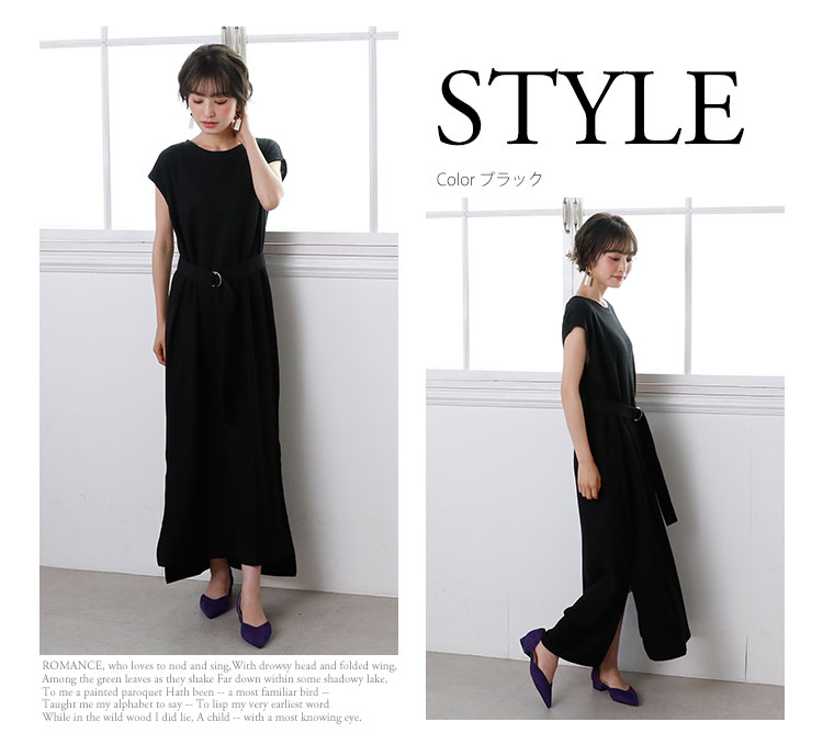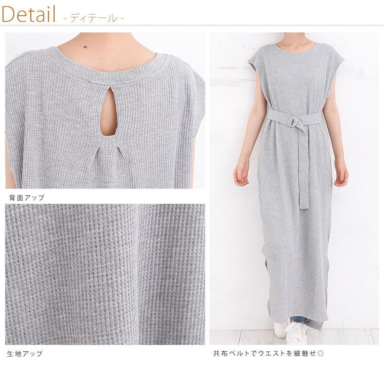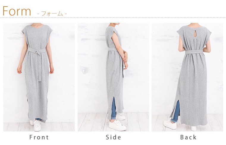 Iラインでスッキリ魅せ。共布ベルト付きノースリーブワンピース