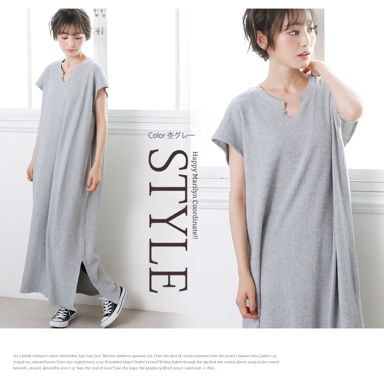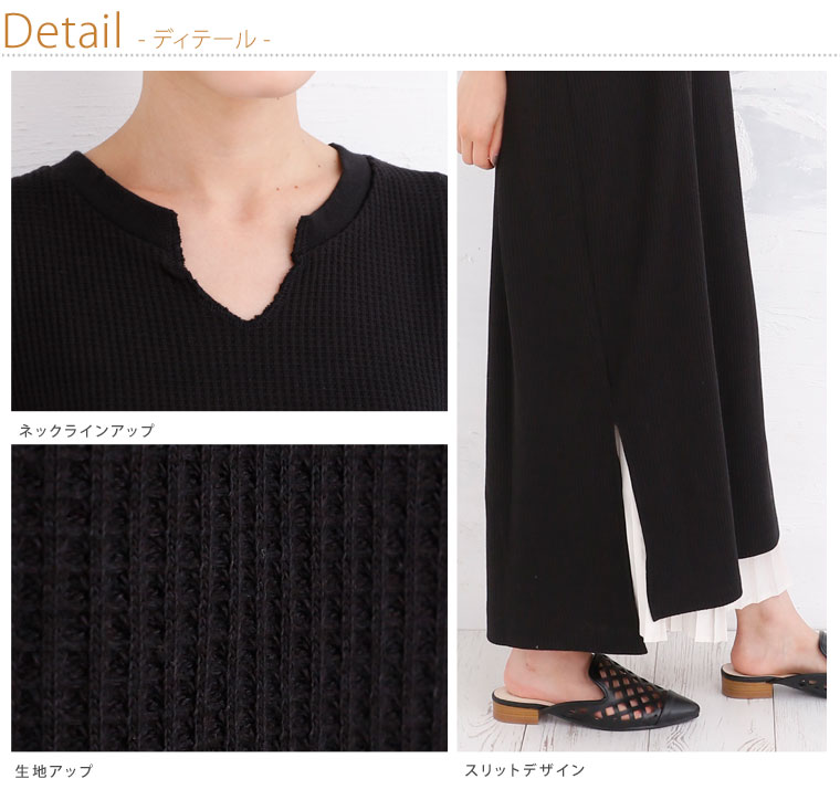 ざっくりワッフル編みでカジュアルな印象に。スリットワンピース