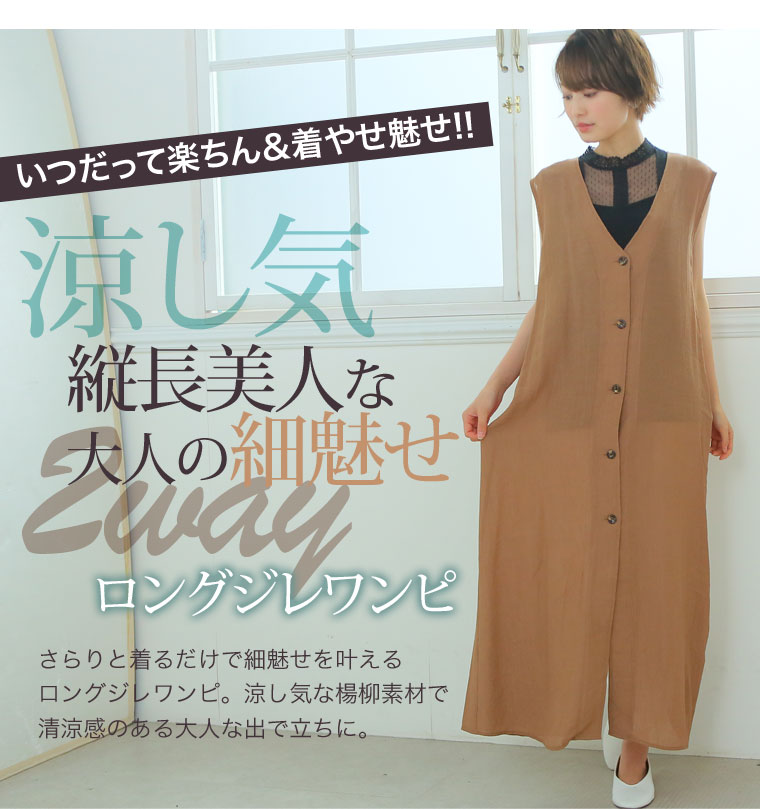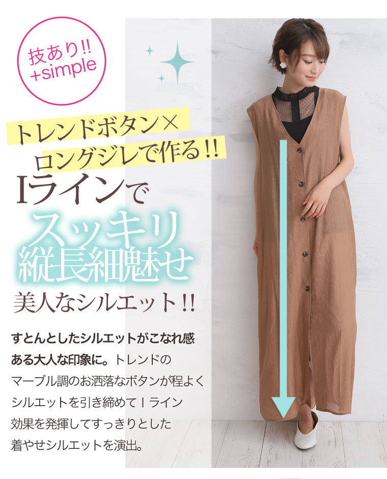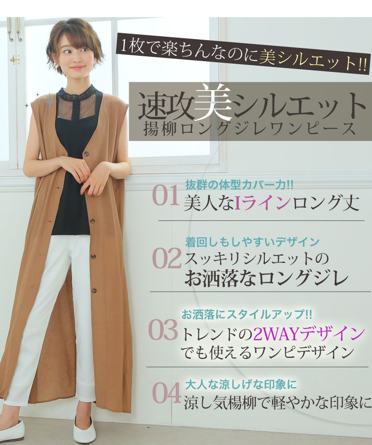 すっきり縦長シルエットで体型カバーが叶うロングジレワンピース