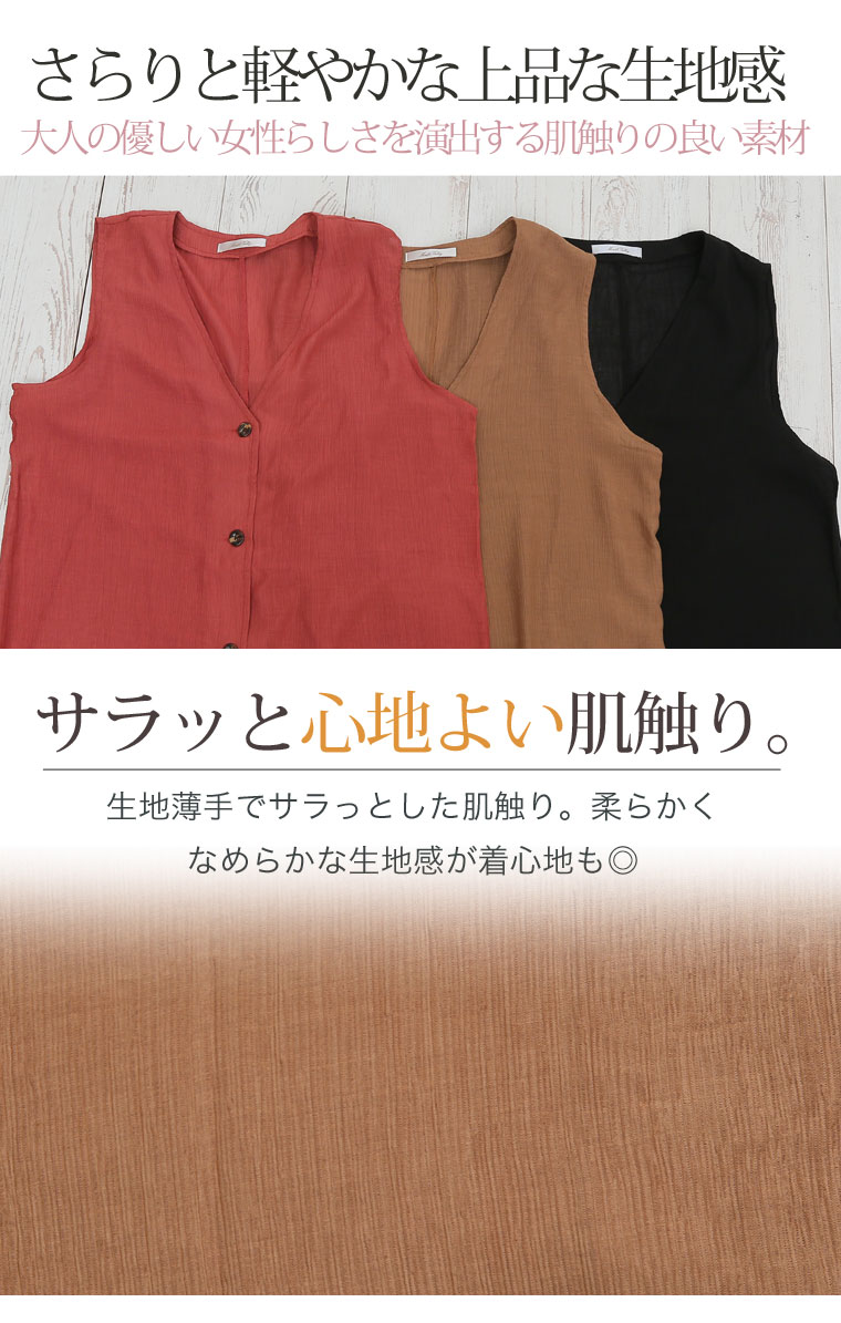 ボタンを使って2wayでも、サッとジレ風の羽織でもバランスよく使える1枚です。