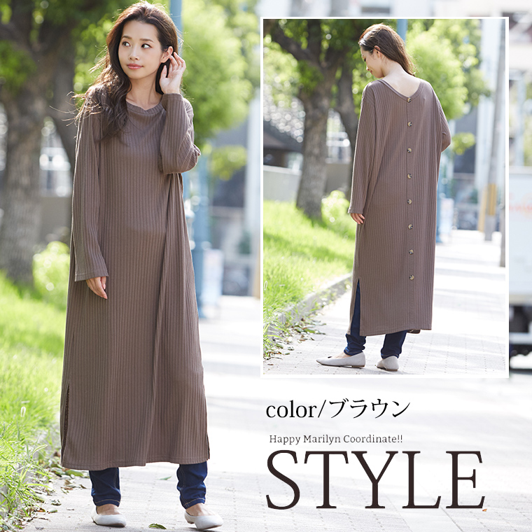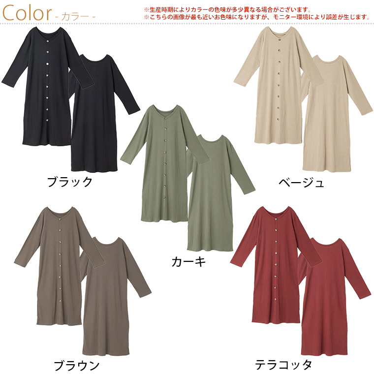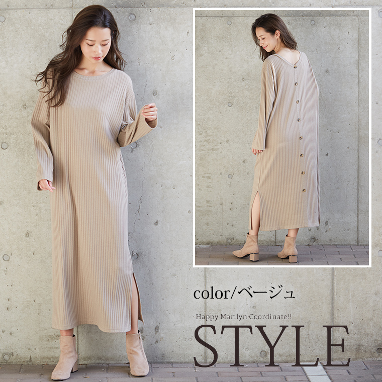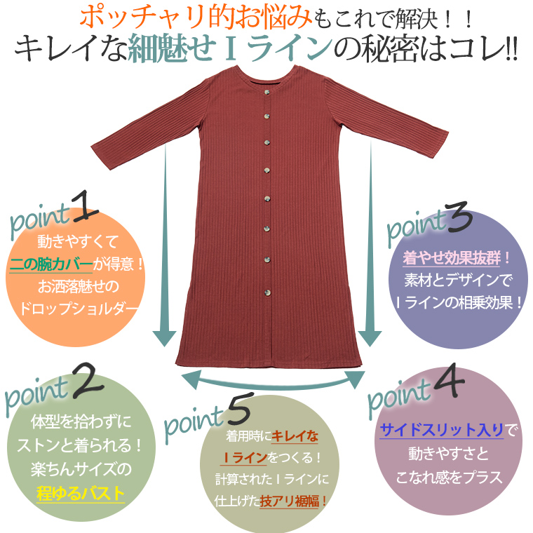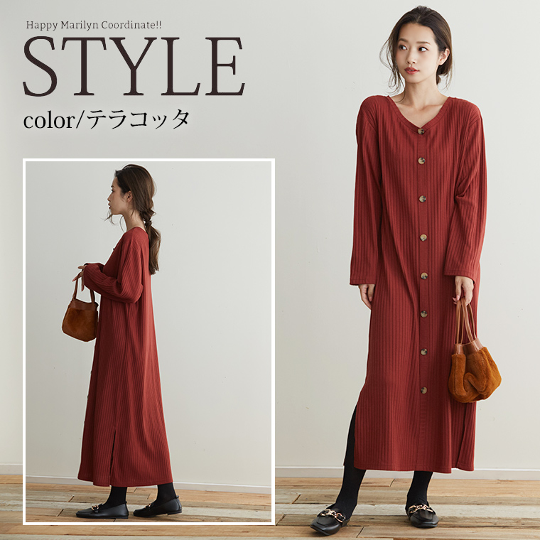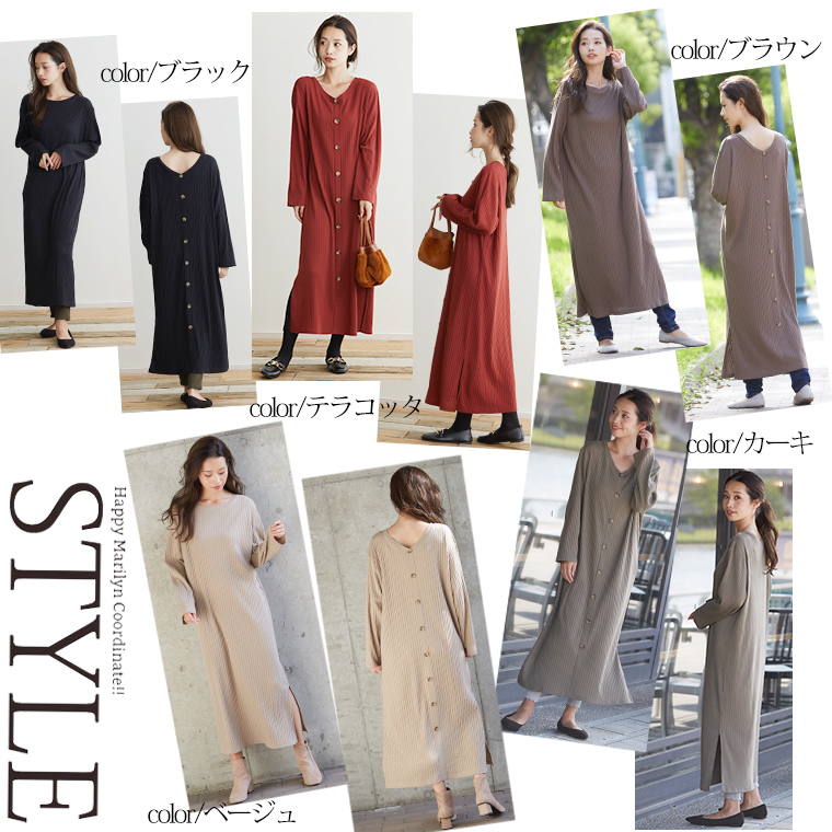 トレンドリブ×ボタンデザインでIラインの細魅せ効果を楽しむシンプルなのにお洒落な大人のワンピ