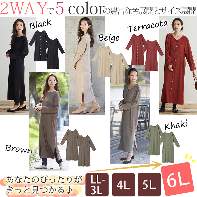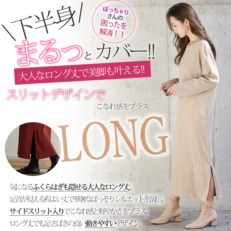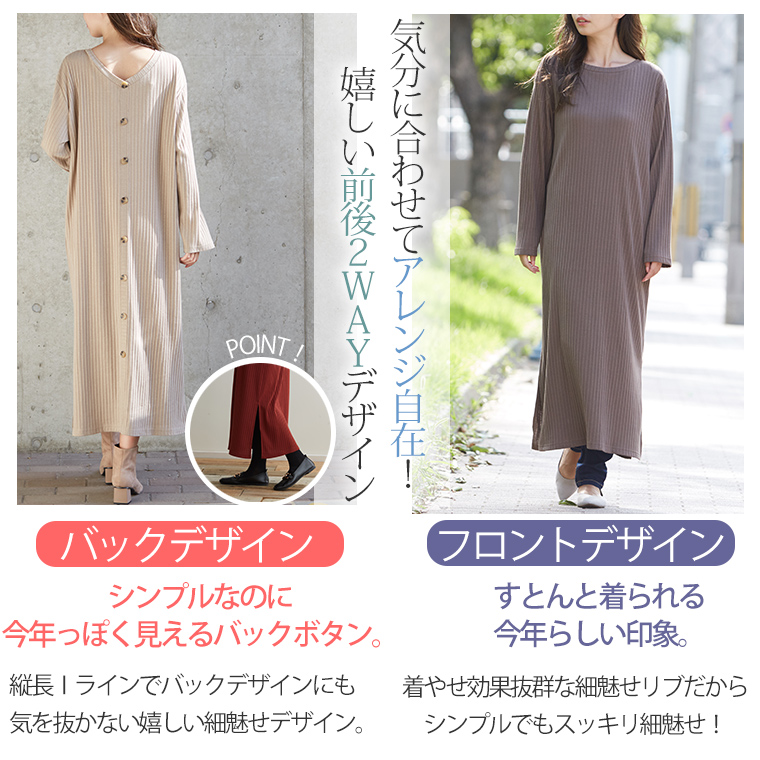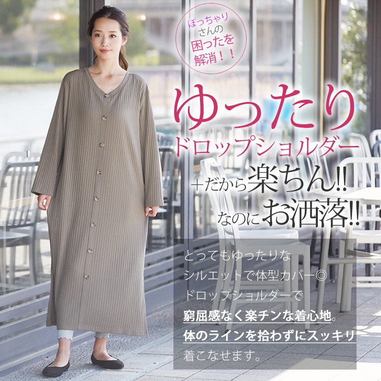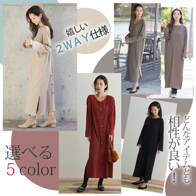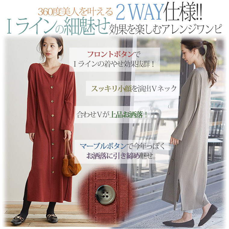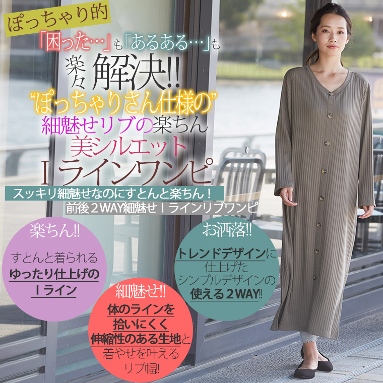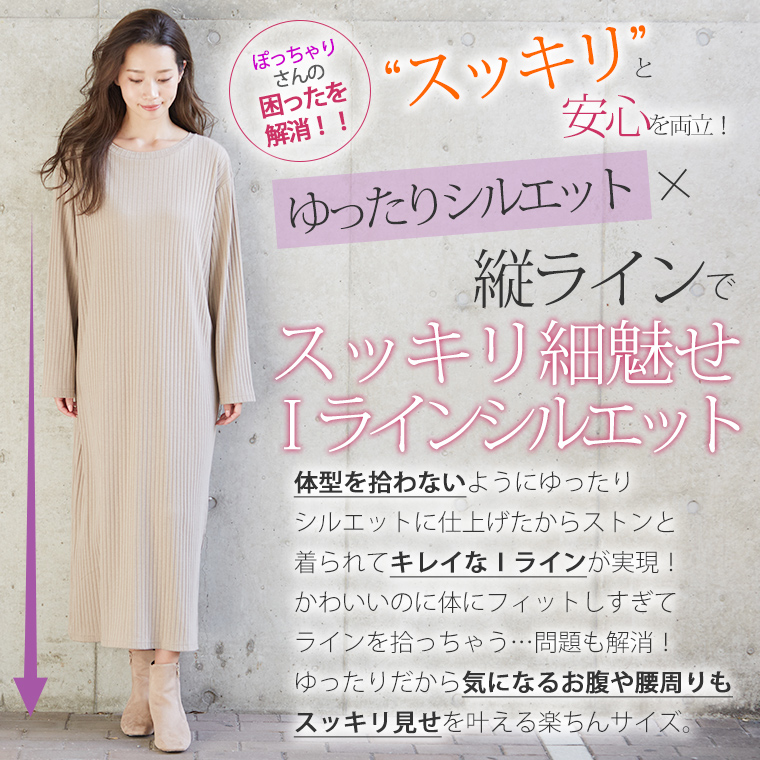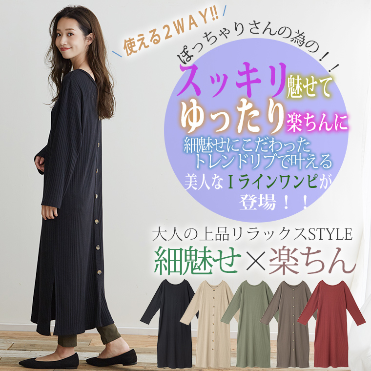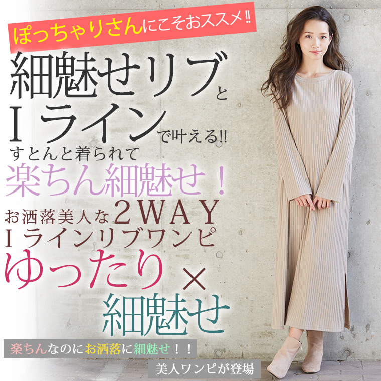 細魅せリブでゆったりなのにスッキリ細魅せな大人の2WAY美人リブワンピース