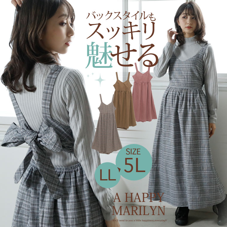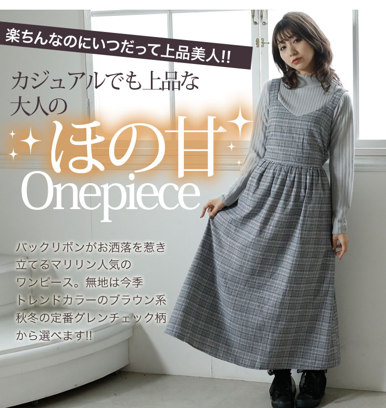 無地とチェックから選べる!!バックリボンデザインワンピース