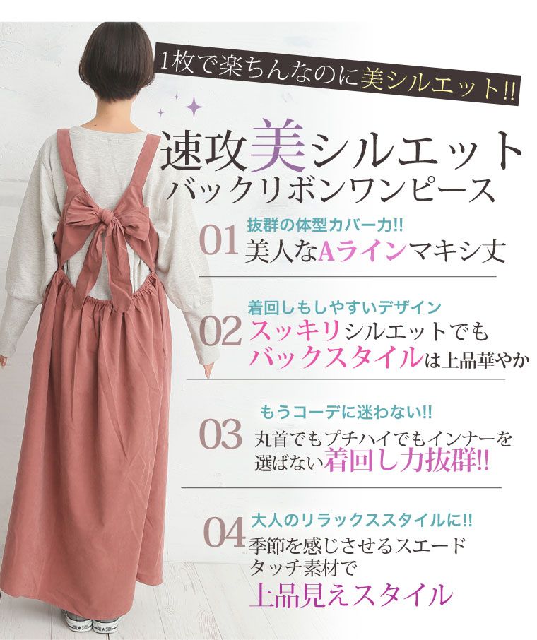 後ろ姿も可愛くスッキリ魅せるリボンがポイント!!ウエスト切替でバランスよくコーディネート