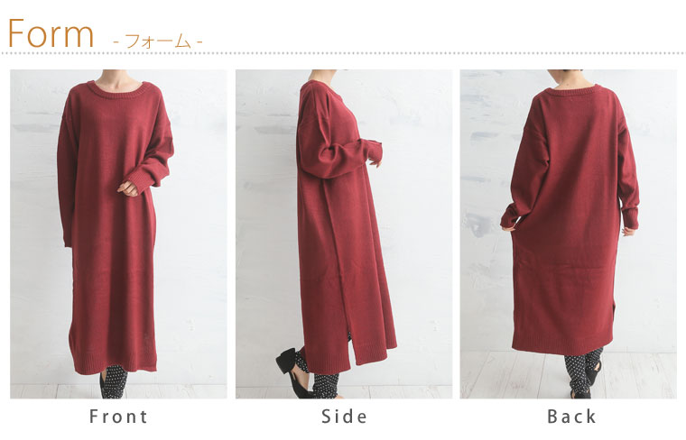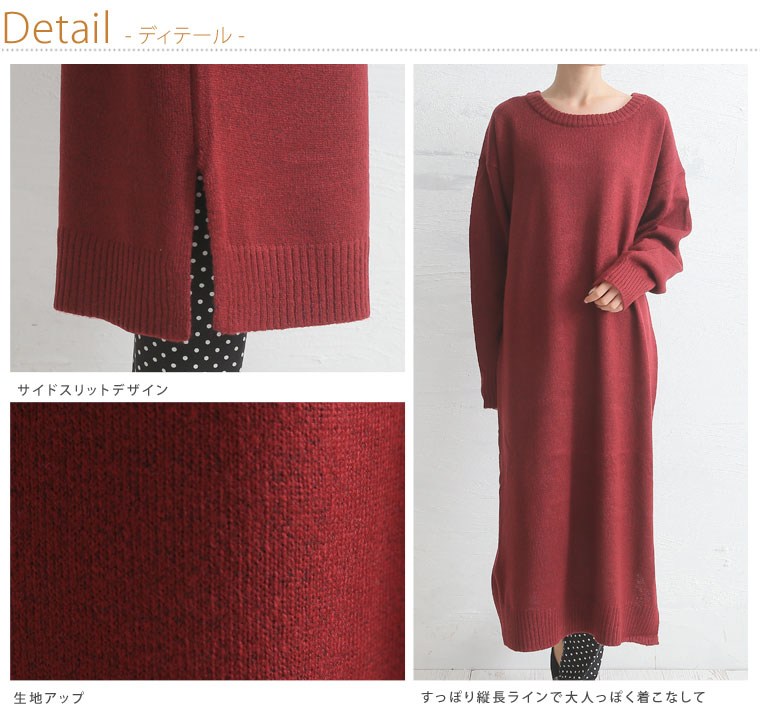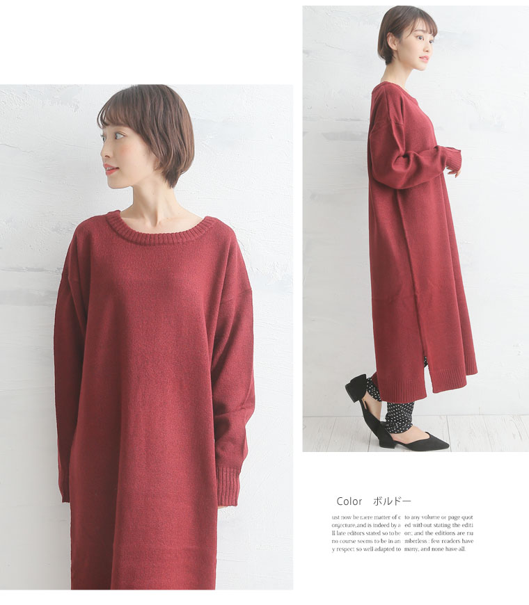 天竺編みでカジュアルに着こなす。裾スリット大人ワンピース