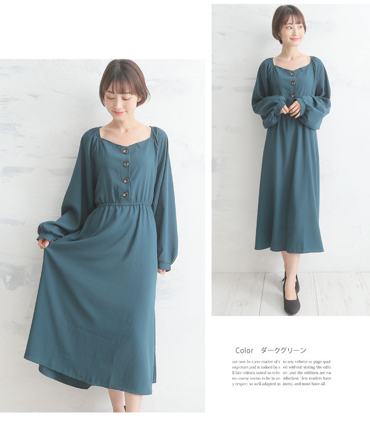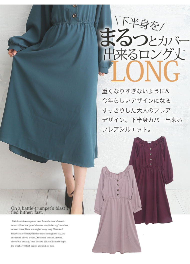 ウエスト切替でバランスよくコーディネート。しっとりとした生地感で華やかな着こなしに。