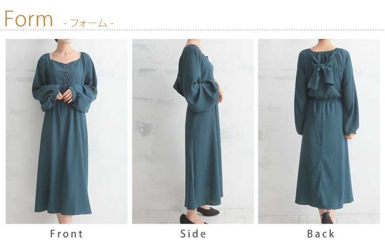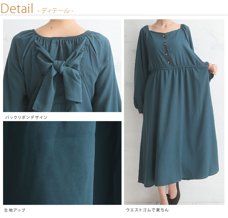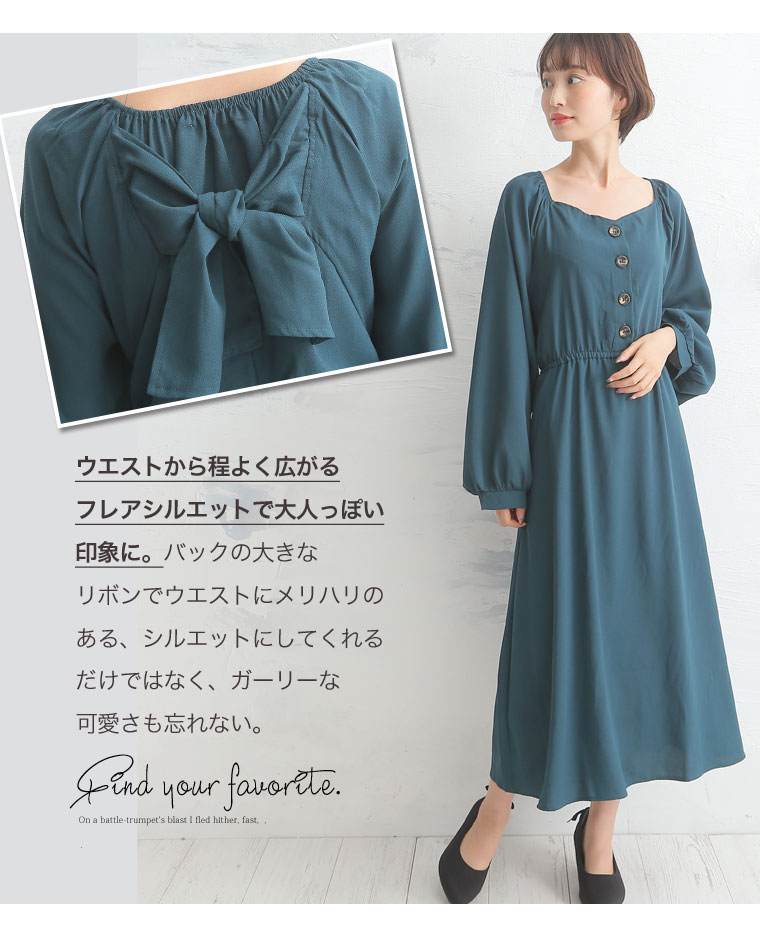 すっきりとしたネックラインでデコルテ綺麗魅せ!!バックリボンワンピース