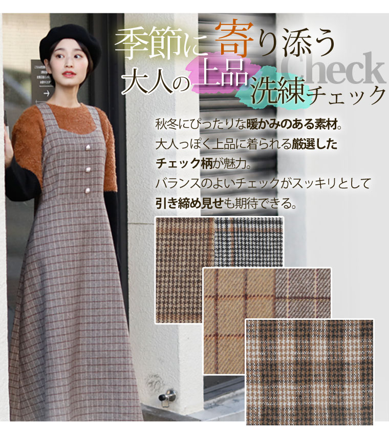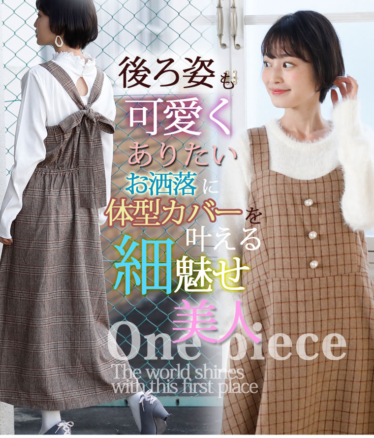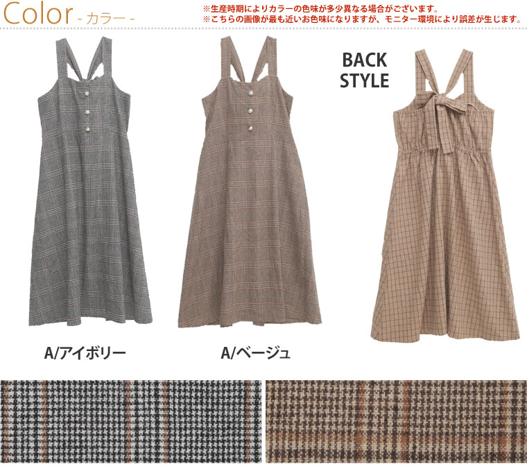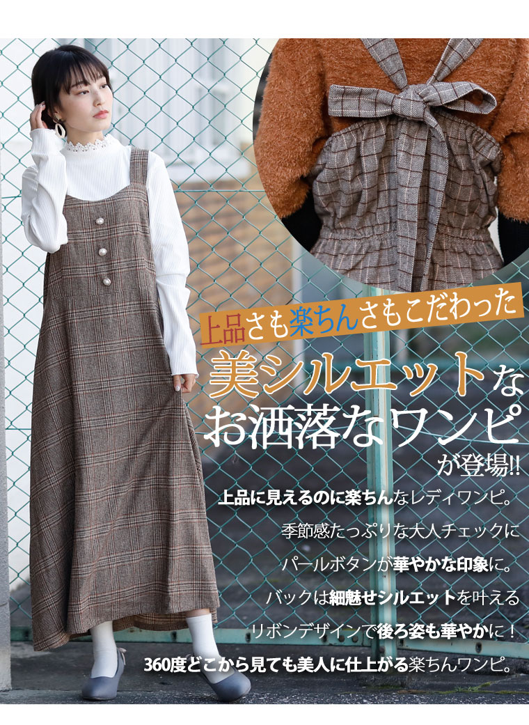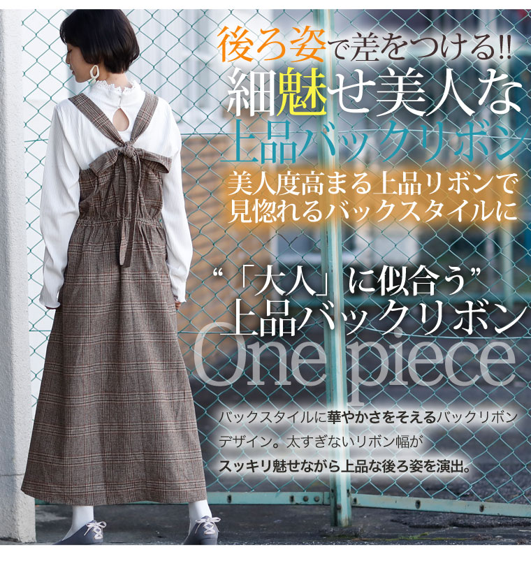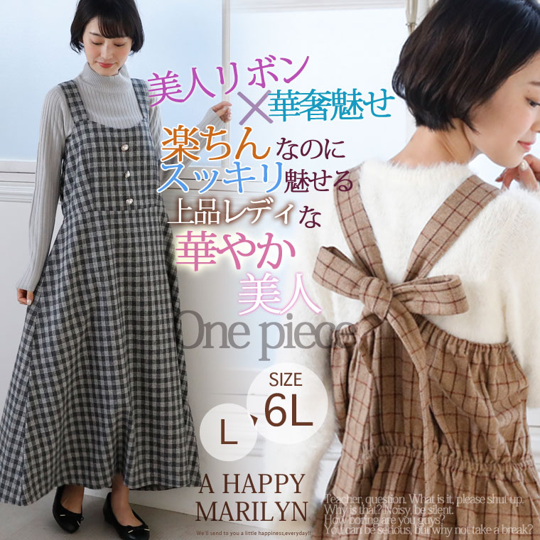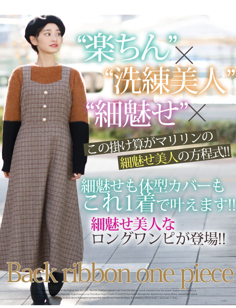 マリリンオリジナル!上品レディに仕上がる大人なチェック柄ワンピ♪バックリボンで360度美人魅せ