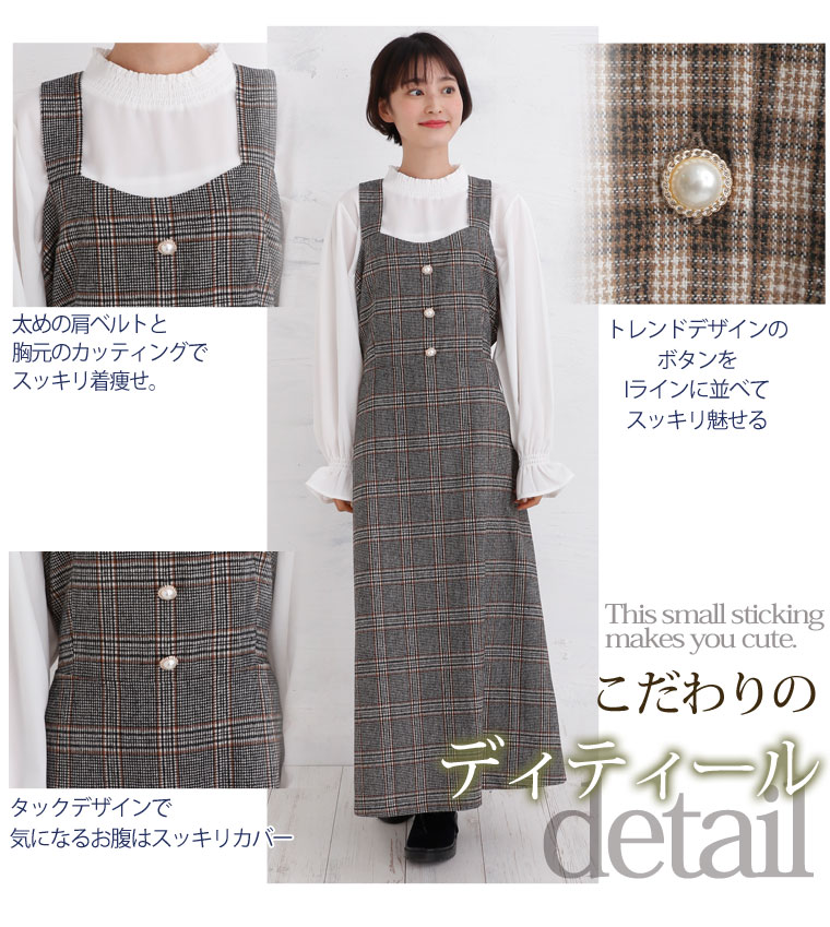 パールボタンが上品に仕上げる!こだわりのシルエットで細魅せを叶える大人の上品美人ワンピ
