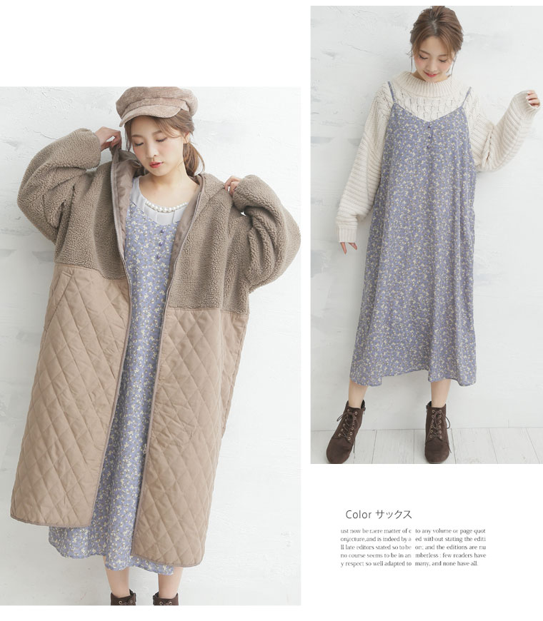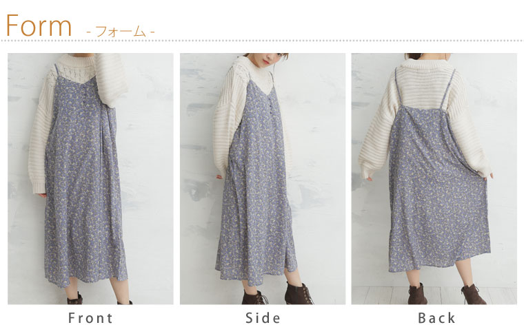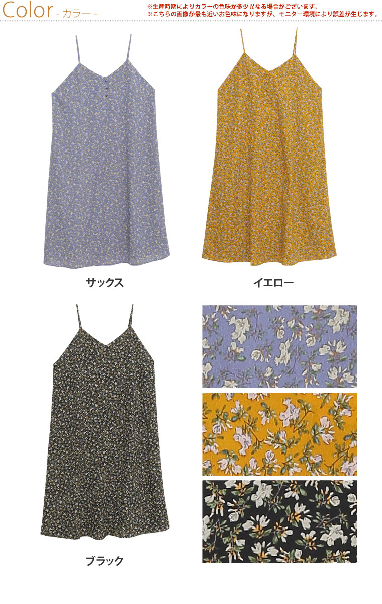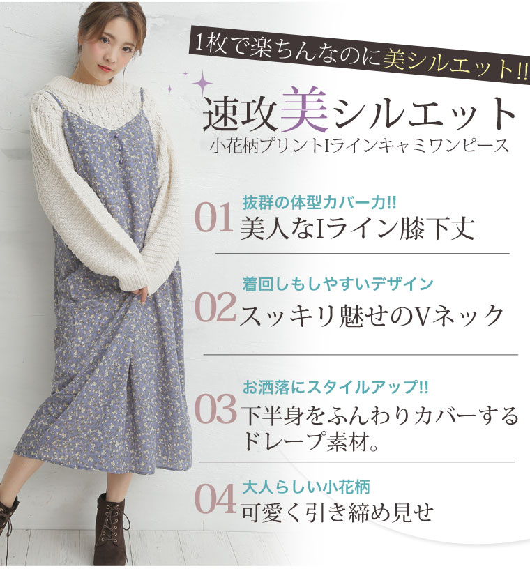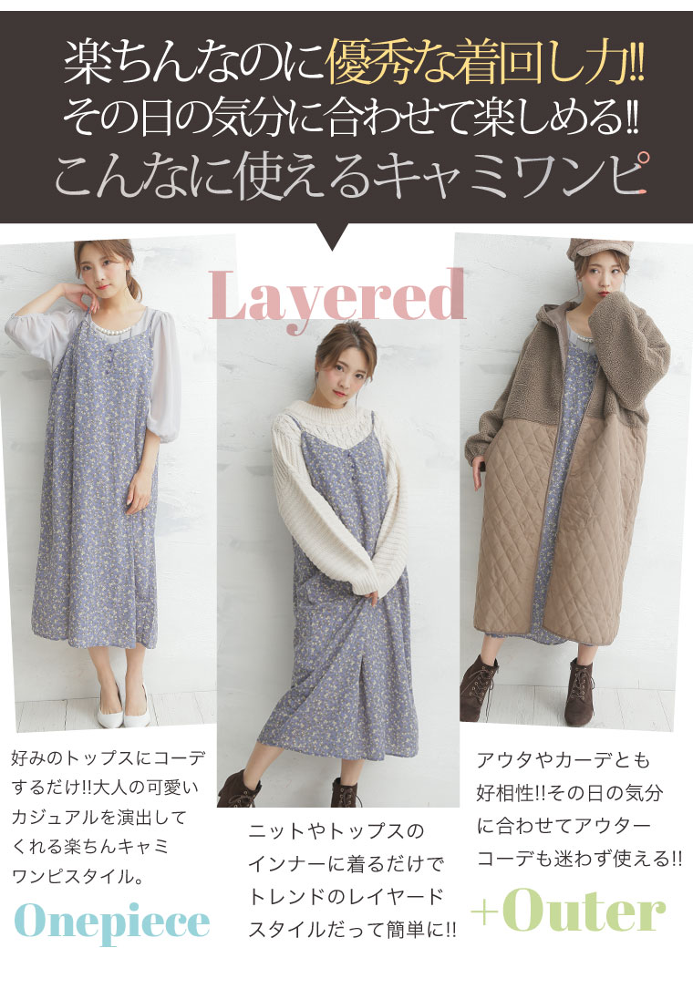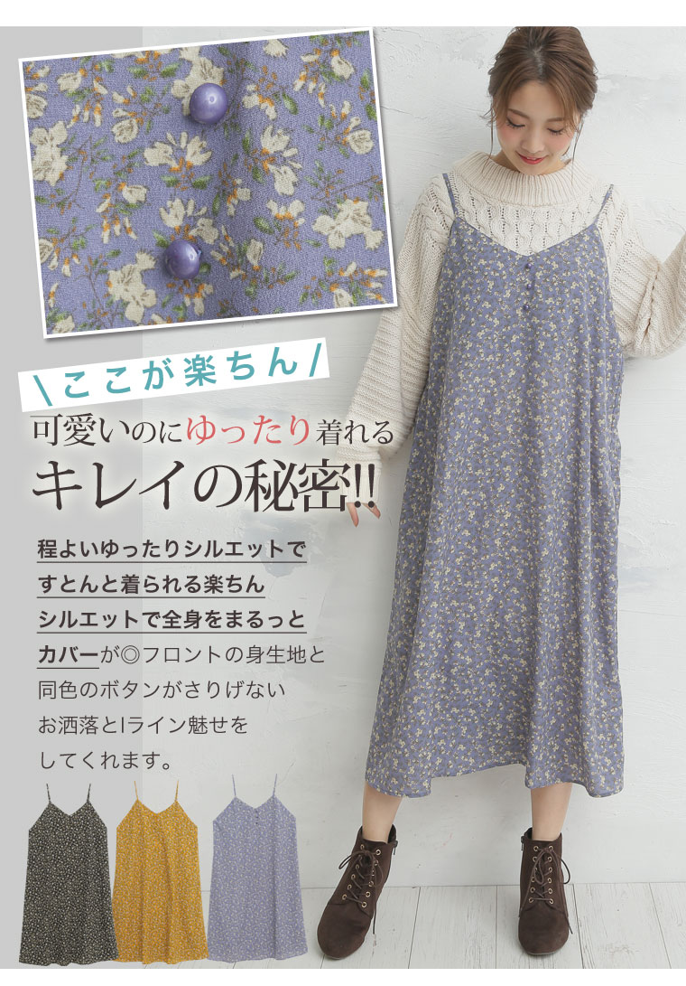 華やかな小花プリントで大人可愛く!!重ね着スタイルでお洒落なIラインキャミワンピース