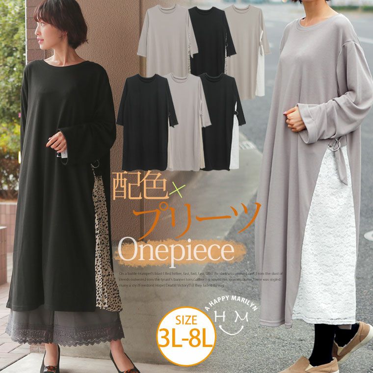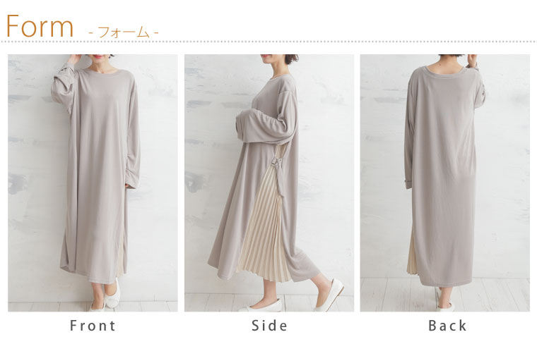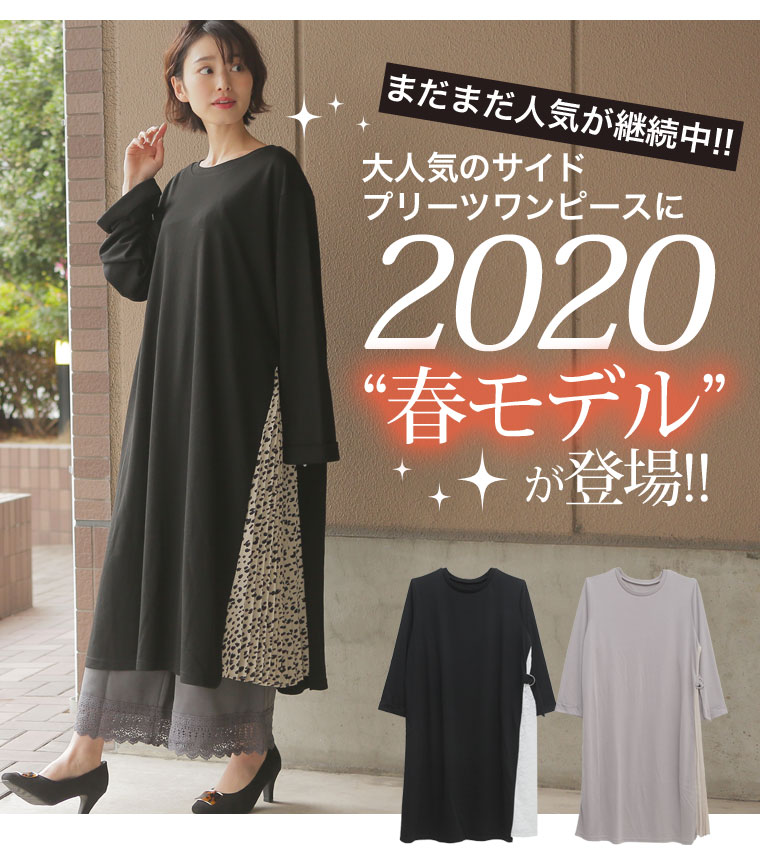 3柄から選べる!!脇プリーツデザインで華やかな着こなしに。ゆったり縦ラインワンピース