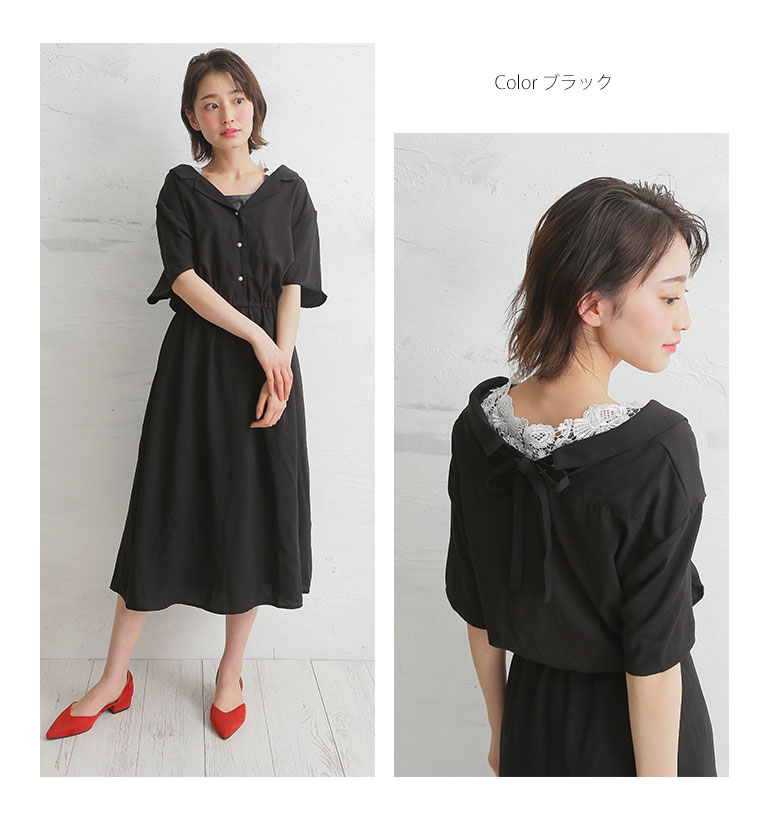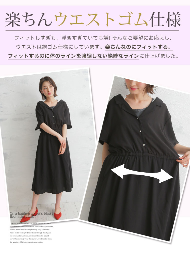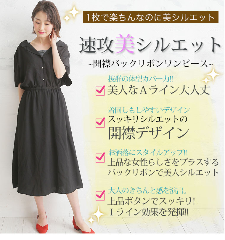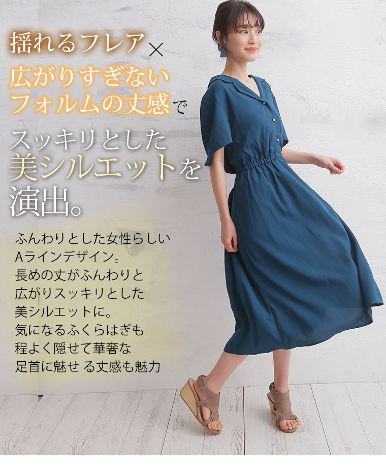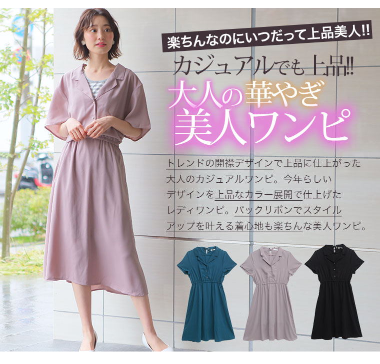 トレンドの開襟デザインで上品に仕上がった、オトナのカジュアルワンピース。