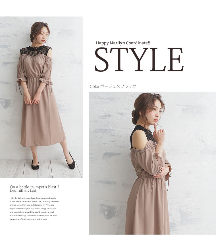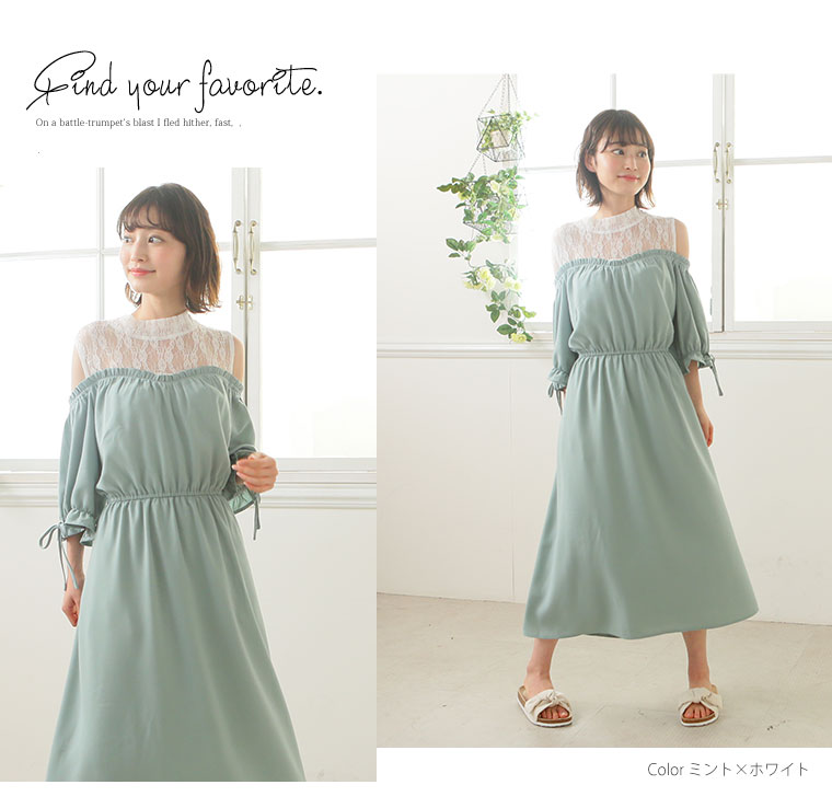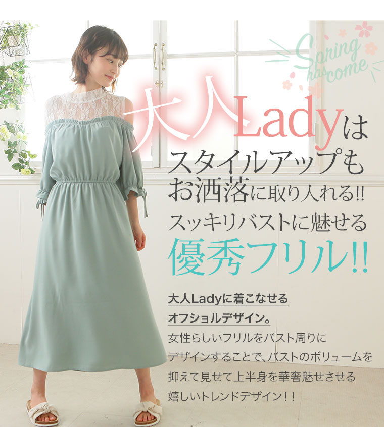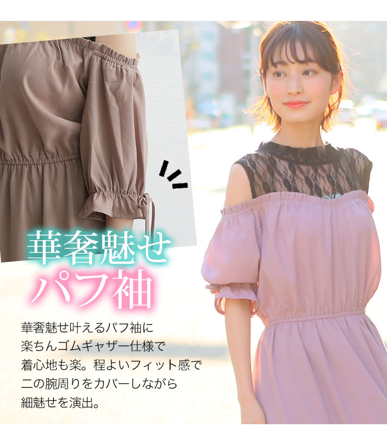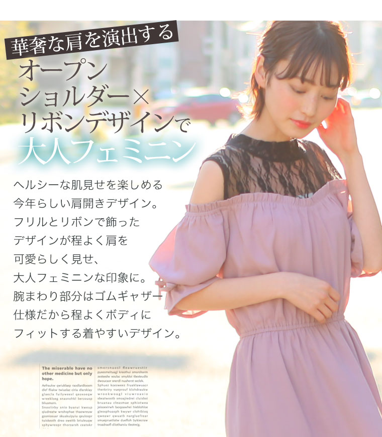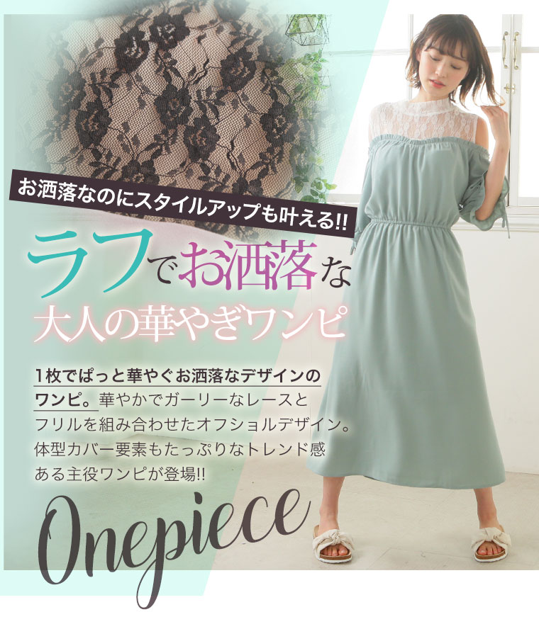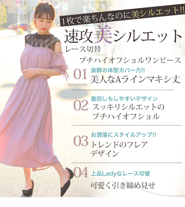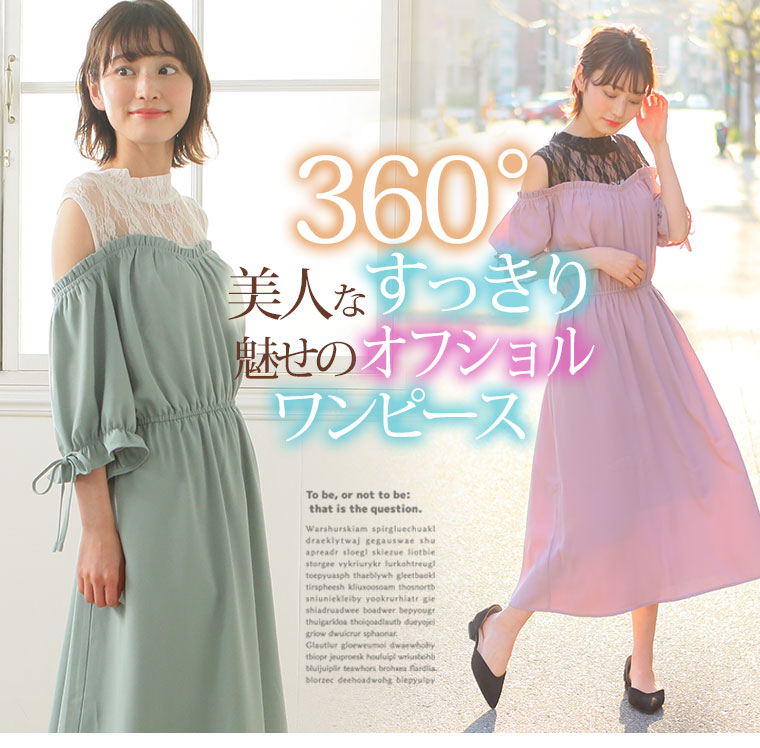 360度美人なすっきり魅せのオフショルダーワンピース。