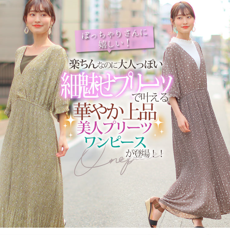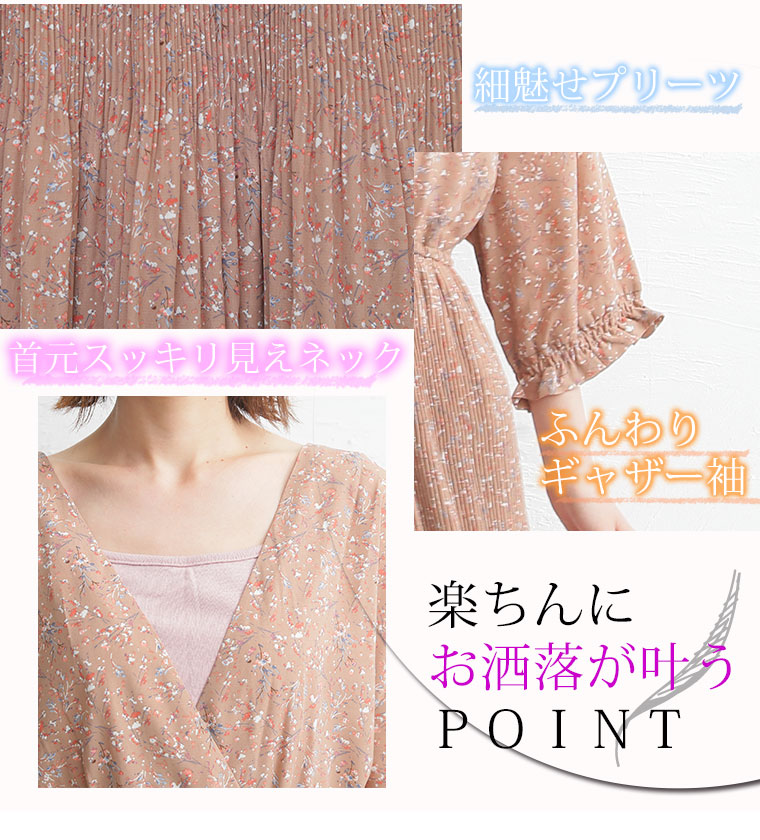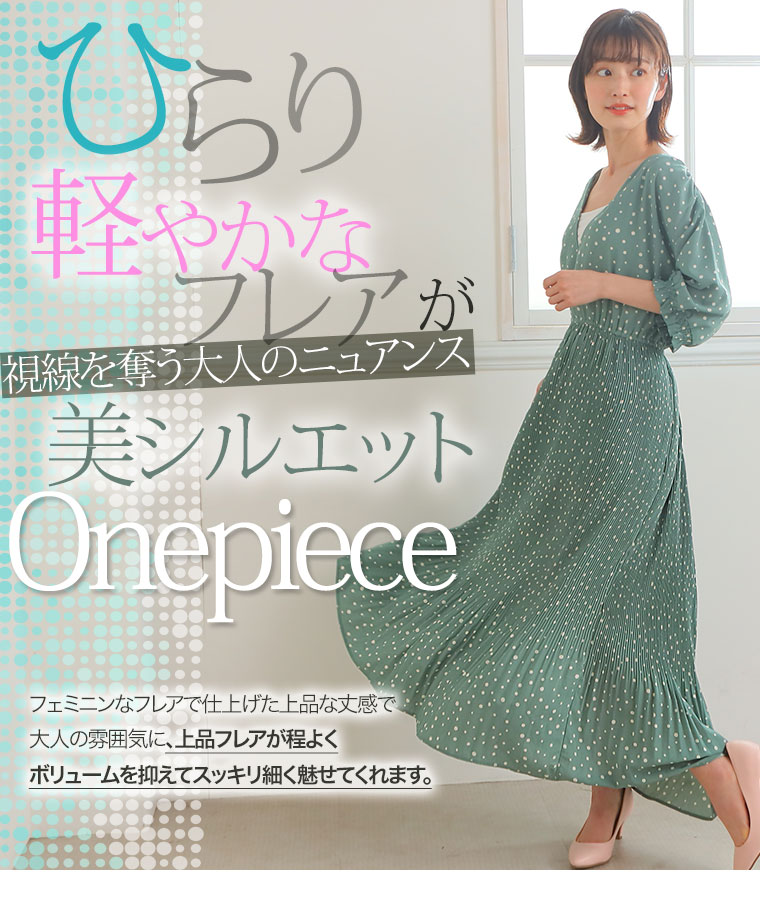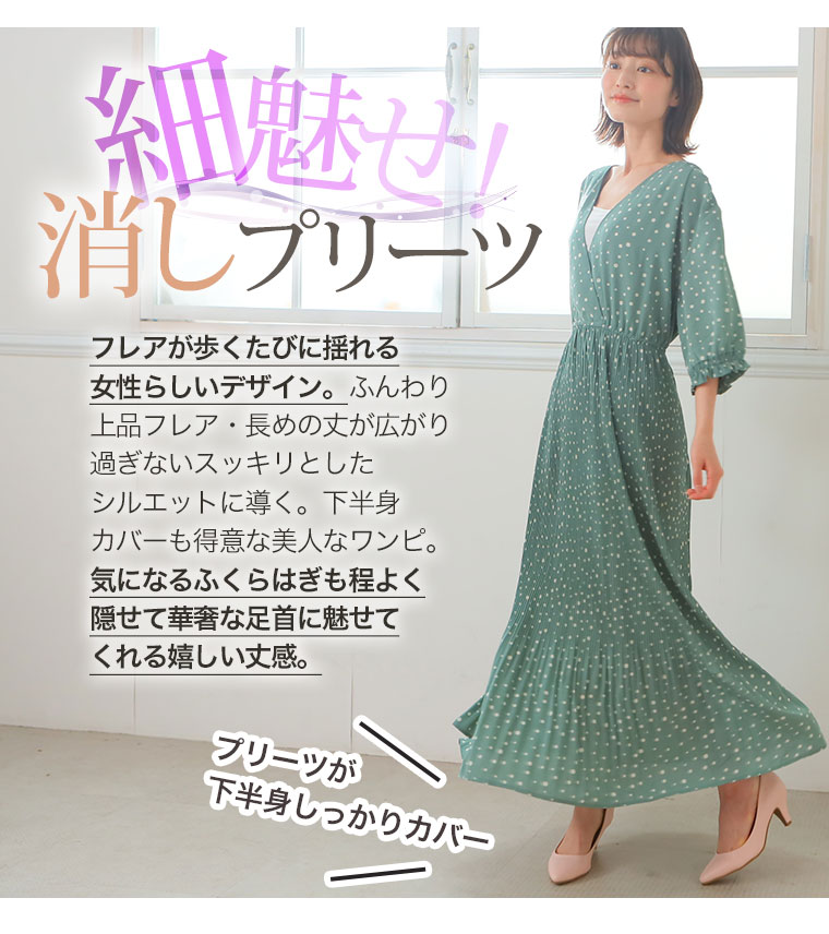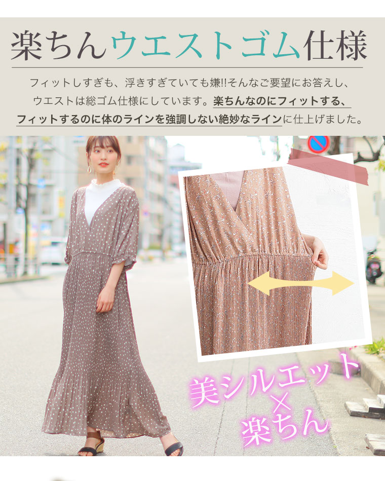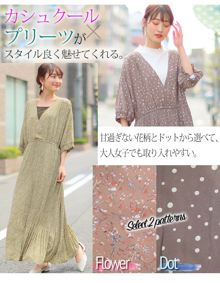 花柄とドットで選べるふんわり軽やか楽ちん美人な大人の華やかプリーツワンピ