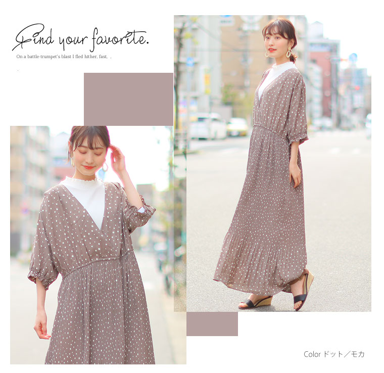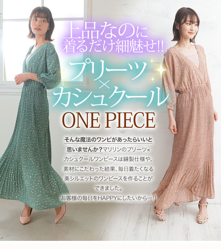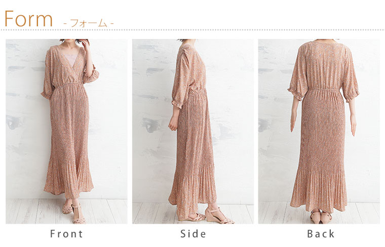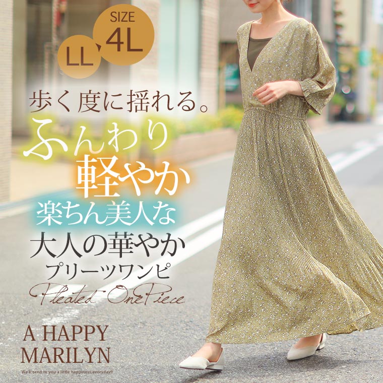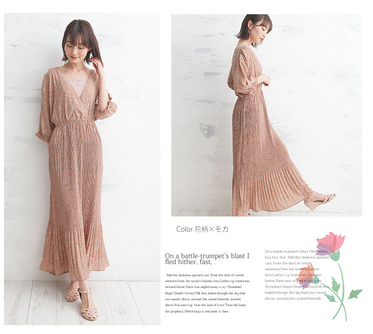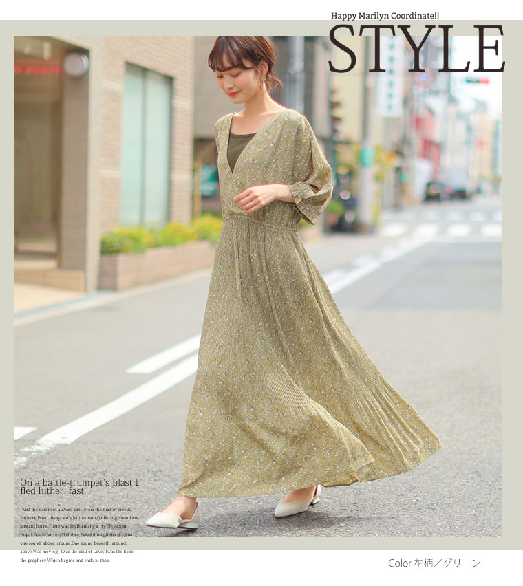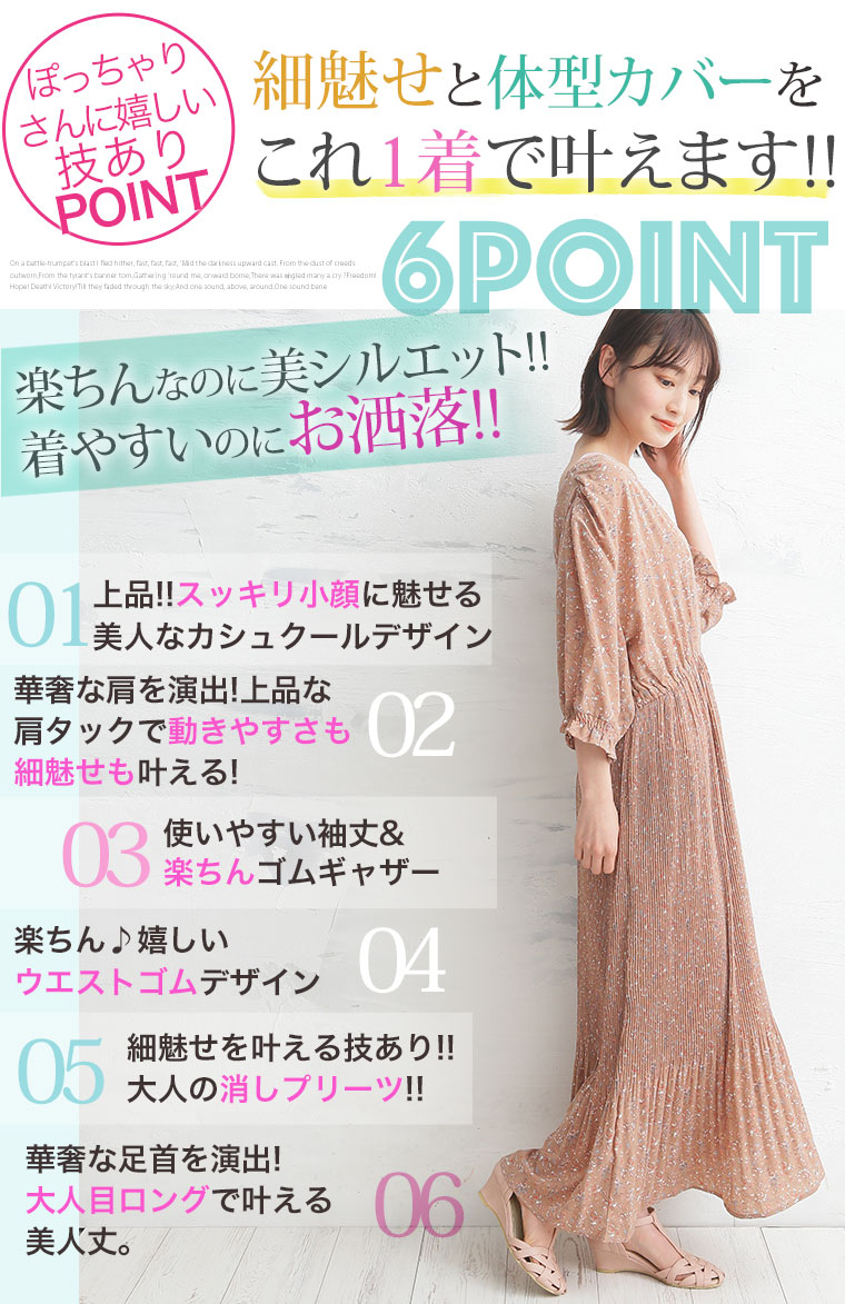 花柄とドットで選べるふんわり軽やか楽ちん美人な大人の華やかプリーツワンピ