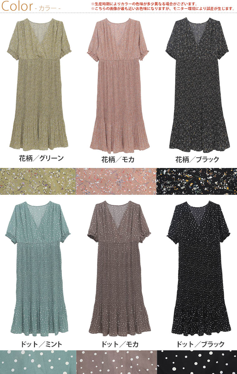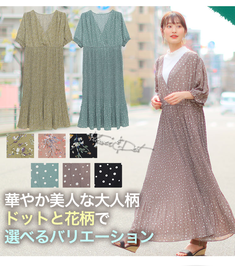 4. 大きいサイズ 花柄とドット柄が選べる カシュクール プリーツ ワンピース