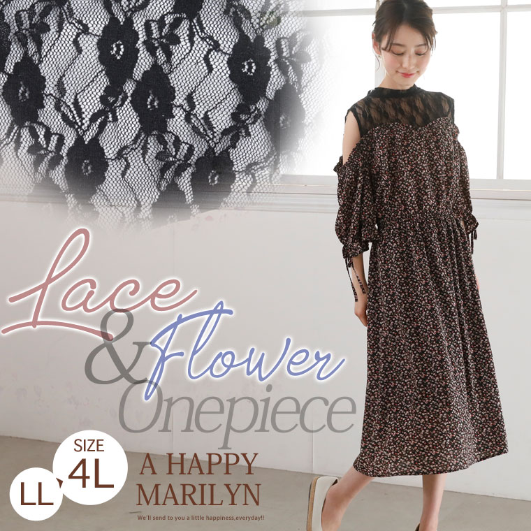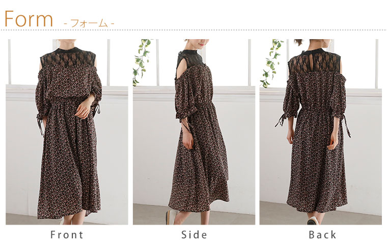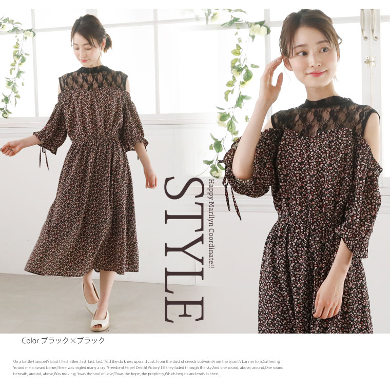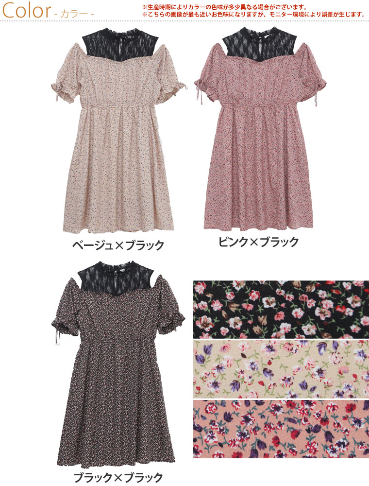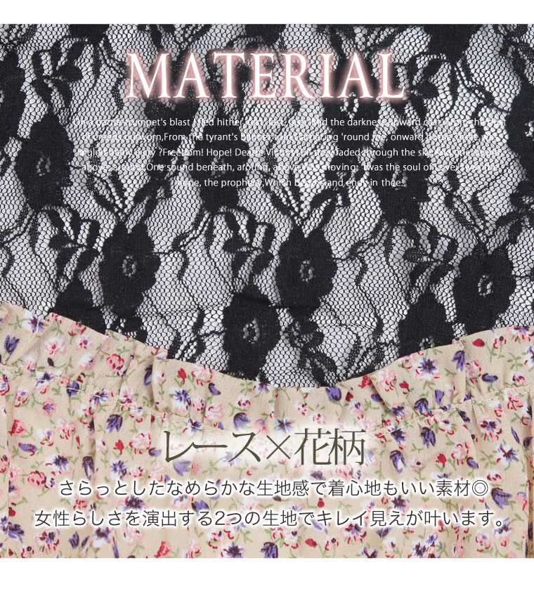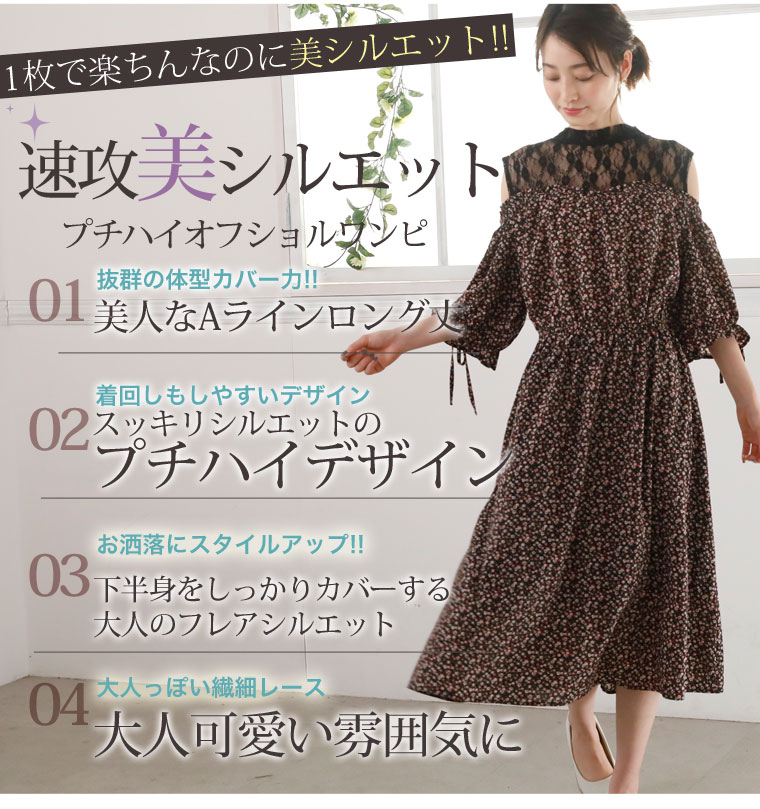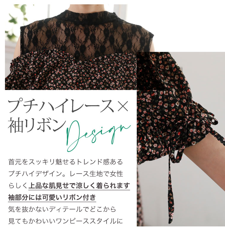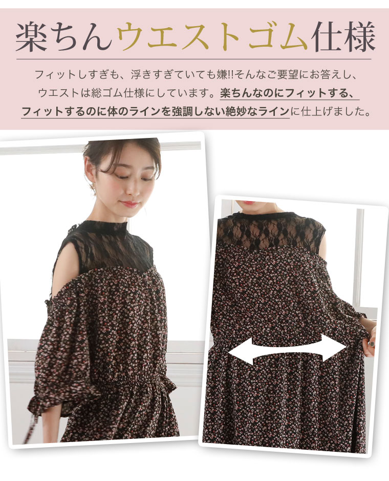 レース切替えのオフショルが涼しげ♪ウエストゴムでゆったり楽ちん◎