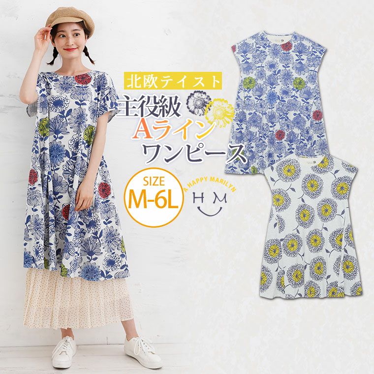 4. 大きいサイズ 北欧風 総柄プリント フレア パネル ワンピース | 大きいサイズの通販ならハッピーマリリン