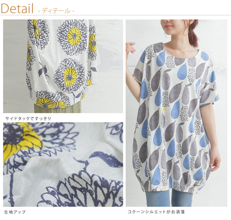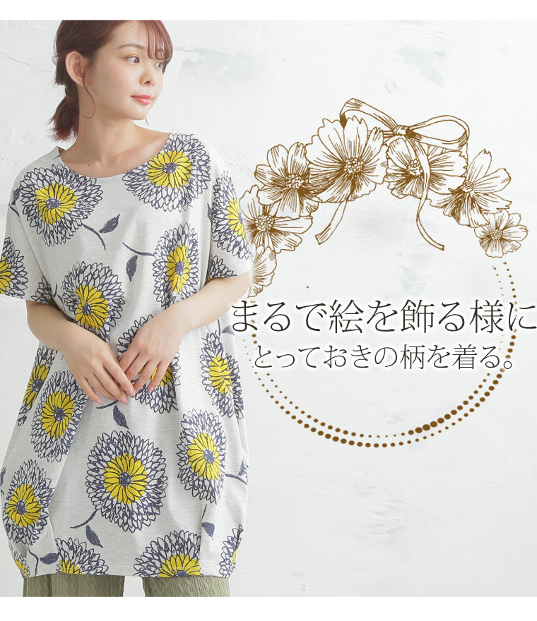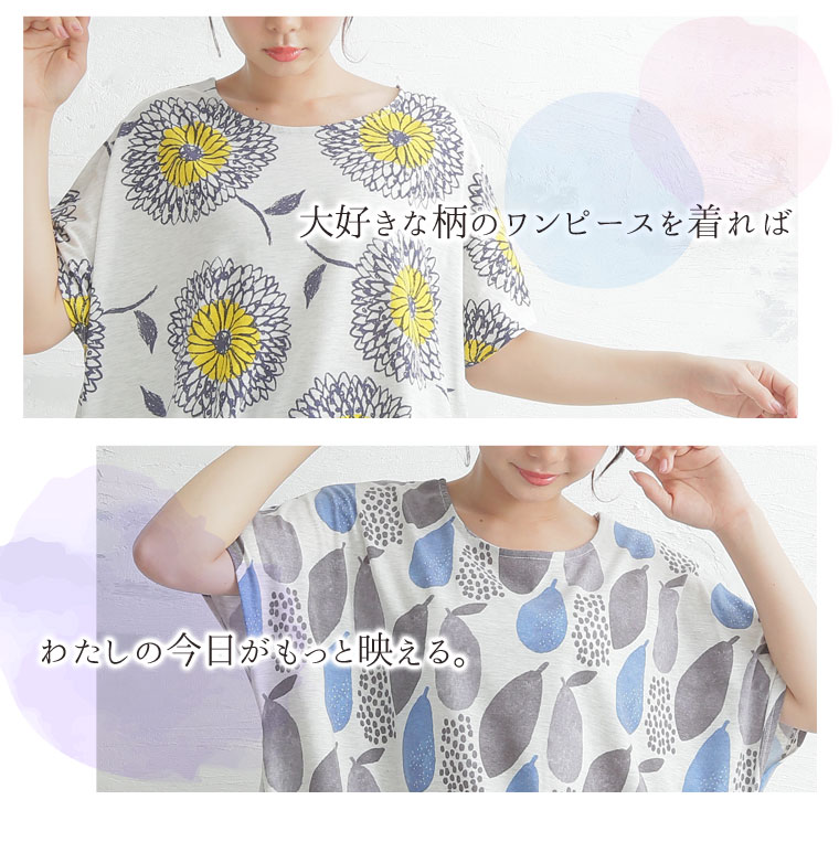 絵画みたいな北欧風プリントがお洒落なコクーンチュニックワンピース