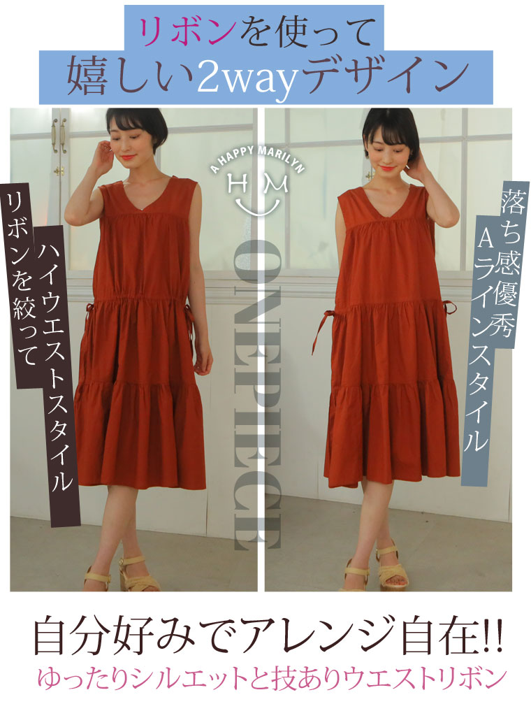 ふんわりゆったり体型カバー♪サイドリボンで調整可能◎
